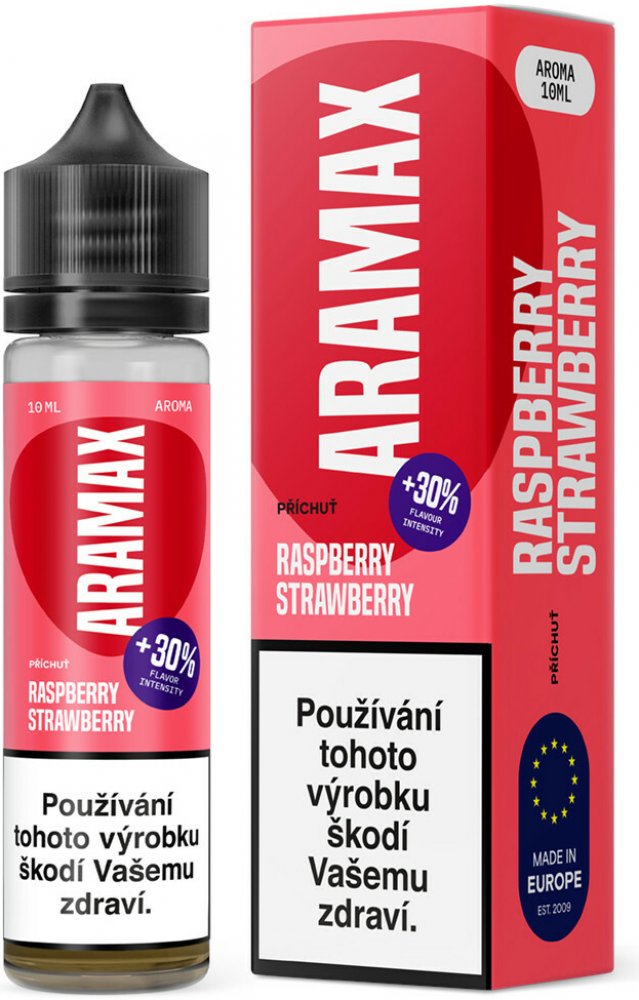Obsah balení: 1ks příchutě Aramax Shake and Vape - Raspberry Strawberry 10ml