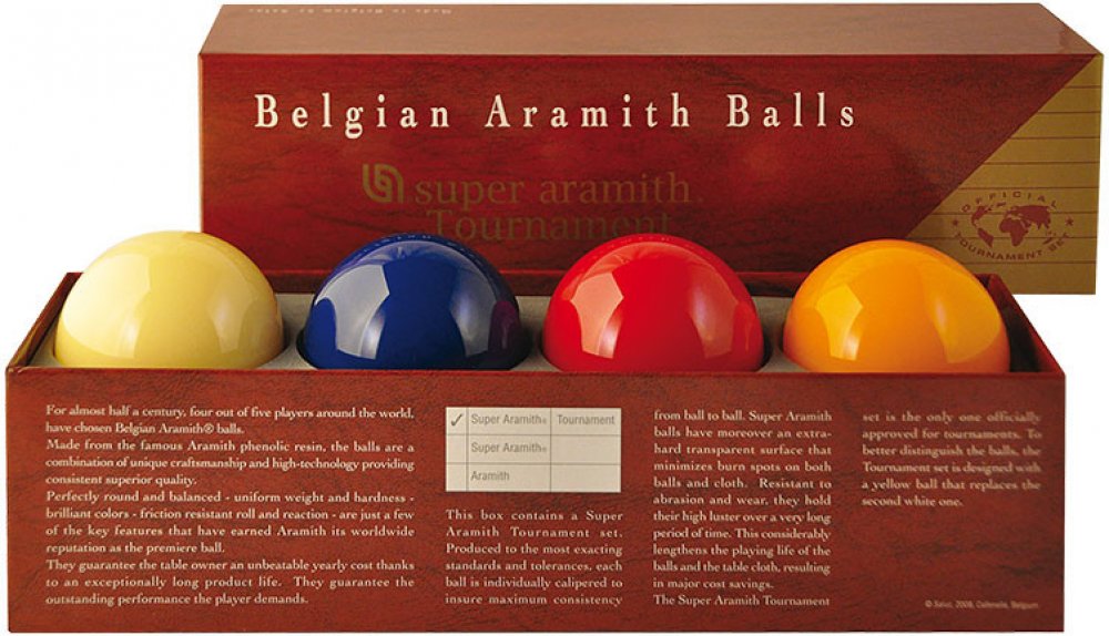 - Karambolové koule Aramith Tournament jsou koule nejvyšší kategorie a kvality na trhu.
