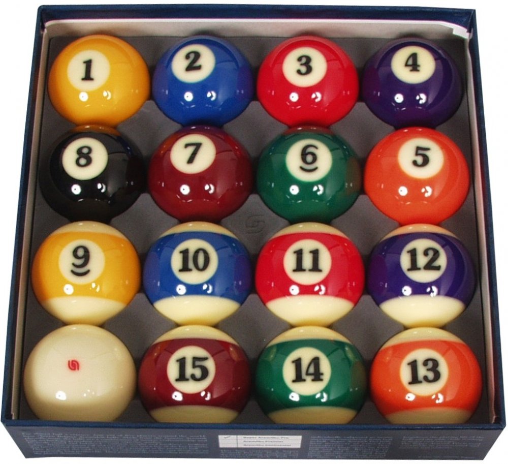 Set obsahuje 16 poolových koulí o průměru 57,2 mm.