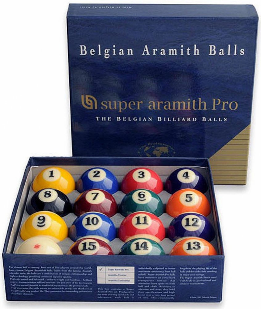 Set koulí Aramith Super Pro je vyroben z nejkvalitnější fenolové pryskyřice a splňuje ty nejpřísnější požadavky. Jejich elasticita je speciálně kalibrovaná Aramithem pro optimální odraz, což umožňuje úplnou kontrolu nad každým strkem.