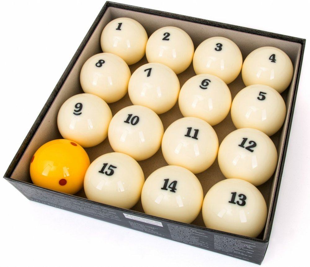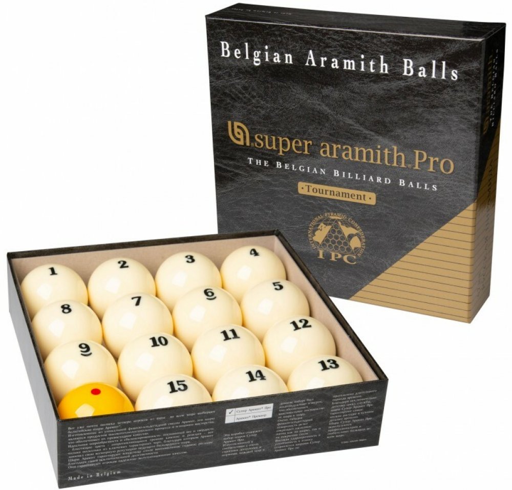Profesionální koule Ruská Pyramida té nejvyšší kvality od belgické firmy ARAMITH z nejkvalitnější fenolové pryskyřice splňujíí ty nejpřísnější požadavky. Koule mají speciálně upravený povrch pro minimalizaci poškození plátna a zanechání stop. Díky jejich struktuře se na plátně vytváří méně ošoupaných stop a dramaticky tím zvyšují jeho životnost.