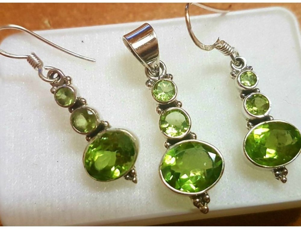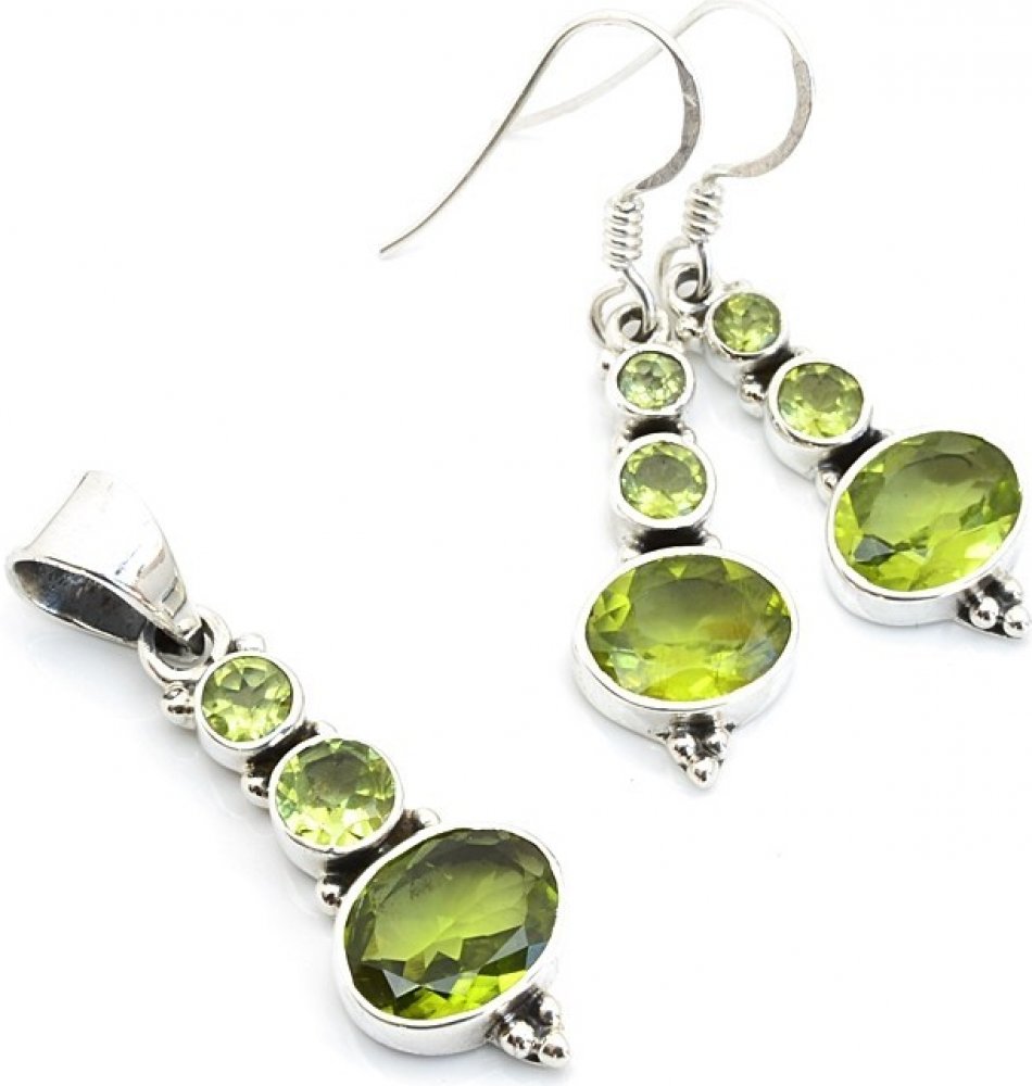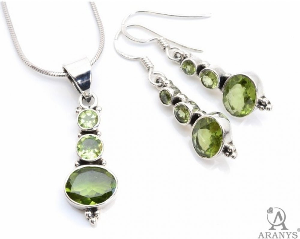Nádherná souprava s pravým broušeným, přírodním olivínem.