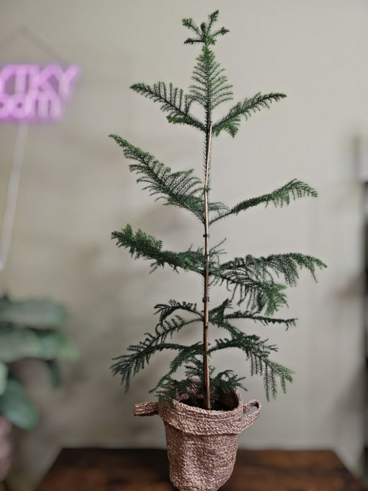 Blahočet bývá často brán jako „vánoční kytka v květináči“, ale ve skutečnosti je to malý strom, který s vámi může bydlet spoustu let. Původně pochází z ostrova Norfolk, kde z něj dorůstají vysoké solitérní stromy. U vás doma zůstanu v mini verzi, ale s podobnou elegancí. Je to takový kompromis mezi lesem a obývákem.