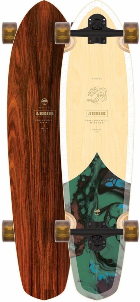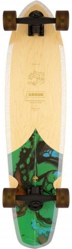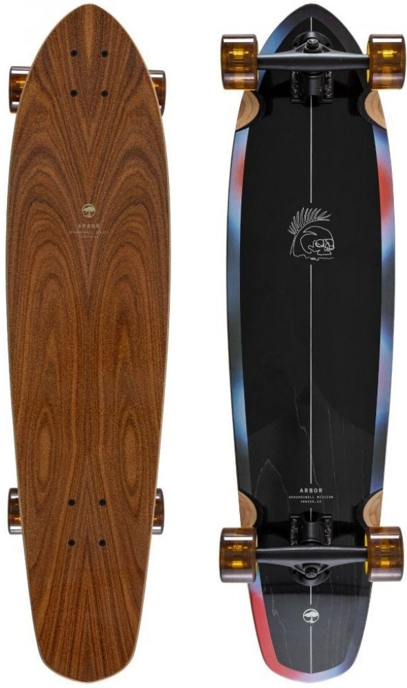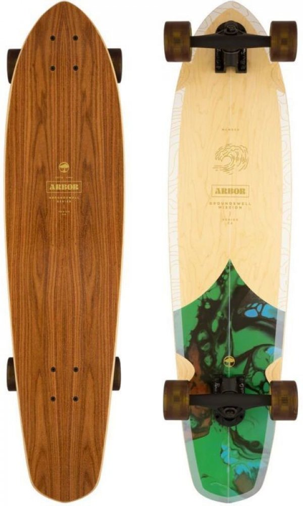 Longboard Arbor Groundswell Mission Longboard ve tvaru single-kick carver navržený tak, aby byl agilní pro všechny tvoje jízdy a zábavu, kterou si chceš na čtyřech kolečkách užít. Svrchní vrstva desky je tvořena prémiovou palisandrovou dýhou. Značka Arbor se po celém světě proslavila těmi nejlepšími prkny pro tvé oblíbené sporty. Od snowboardingu přes skateboarding až po longboardy. Tenhle komplet není výjimkou. Longboard byl vyroben v souladu s udržitelnými