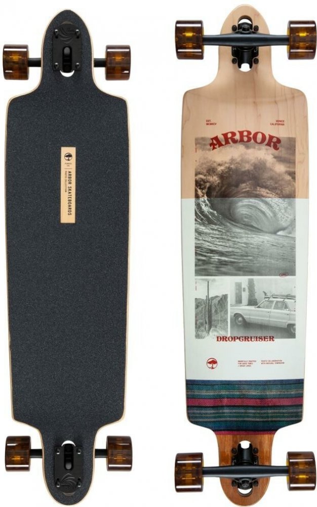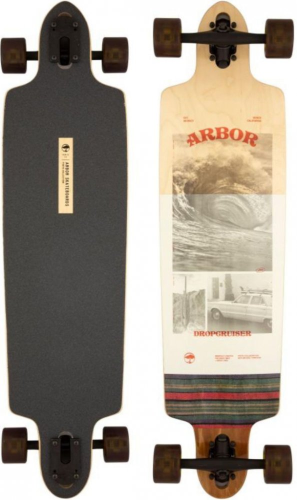 Arbor Complete Performance Photo Dropcruiser 38 je jedním z double-drop longboardů, patřících pod edici s fotografiemi ze spodní strany desky, od fotografa Michaela Townsenda. Tento model patří mezi longboardy určené k jízdě městem, delší oddechové přesouvání, cruising nebo freeride. Materiálem je devítivrstvý kanadský javor, který přidává na kvalitě výrobku. Parametry: Délka : 96.5cm (38") | Šířka: 24.76cm (9.75") | WB : 74.3cm (29.25") Deska : - 9 vrstvý hardrock javor - dřevo pochází z obnovitelných zdrojů - zbytky dřeva, které se nepoužijí při výrobě, se použijí na jiný produkt Trucky - Paris Reverse 50° 180mm Kolečka : - Arbor Easyrider Series - Outlook - větší velikost zvyšuje rychlost jízdy - ideální pro carving a cruising - průměr: 69mm, tvrdost 78A - kontaktní plocha: 44mm,Offset: 0.0mm - kolečka tlumí nárazy - měkké a přilnavé Ostatní: - ložiska Abec 7 se spacery - Die-cut griptape