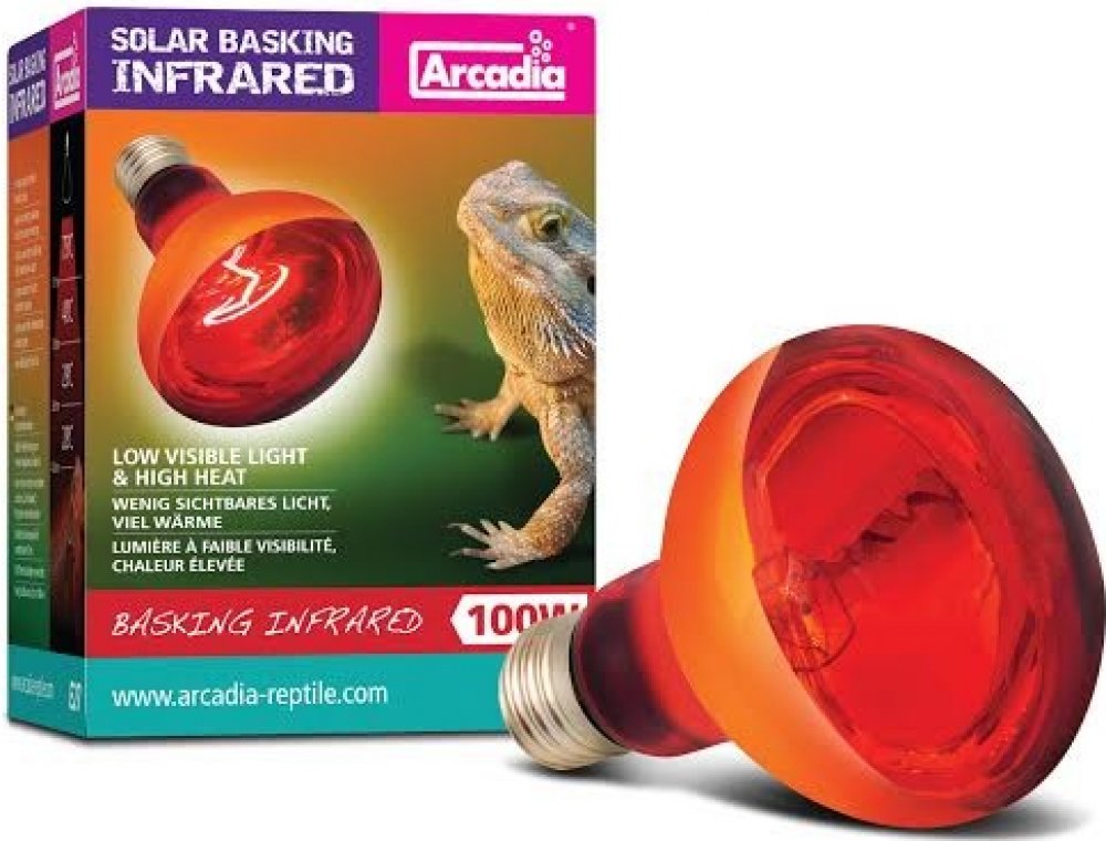 Žárovky Arcadia Solar Basking Infrared neposkytují UVB, jsou určeny pouze k vytvoření lokálních teplých míst. Vždy mějte na paměti, že většina druhů plazů potřebuje kvalitní zdroj UVB záření.