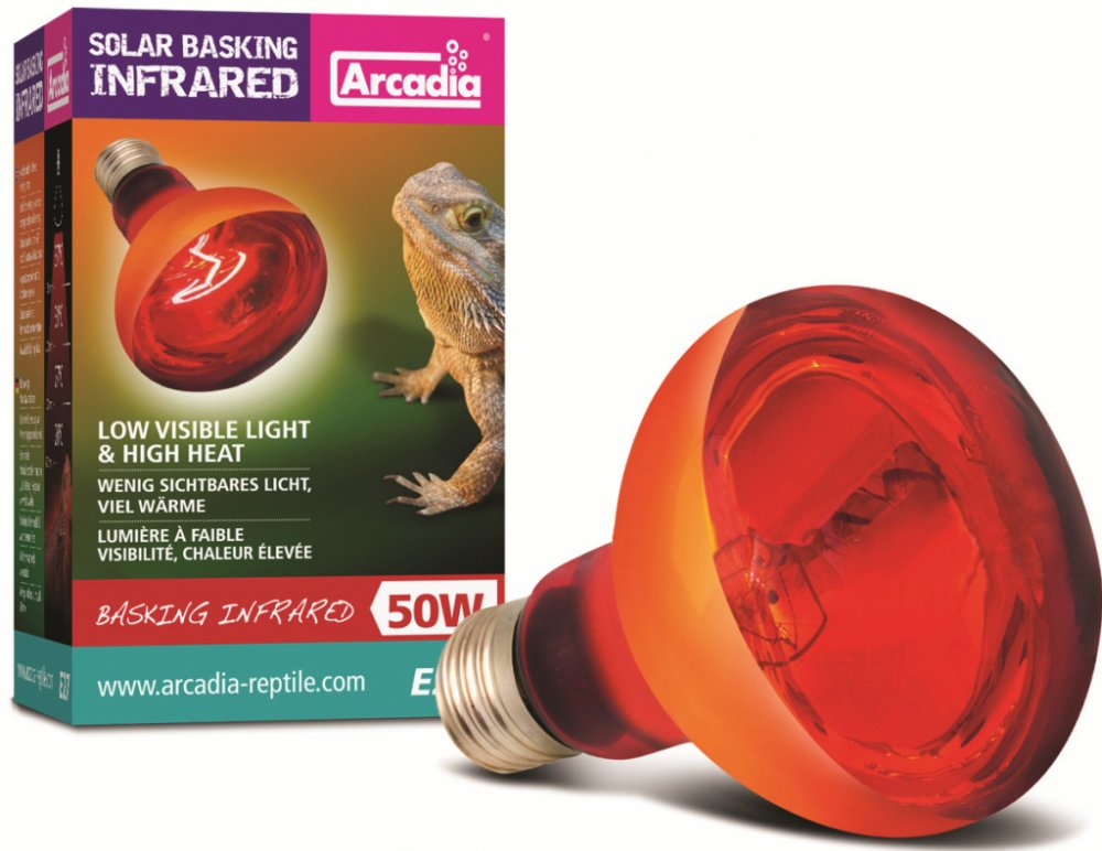 Žárovky Arcadia Solar Basking Infrared neposkytují UVB, jsou určeny pouze k vytvoření lokálních teplých míst. Vždy mějte na paměti, že většina druhů plazů potřebuje kvalitní zdroj UVB záření.