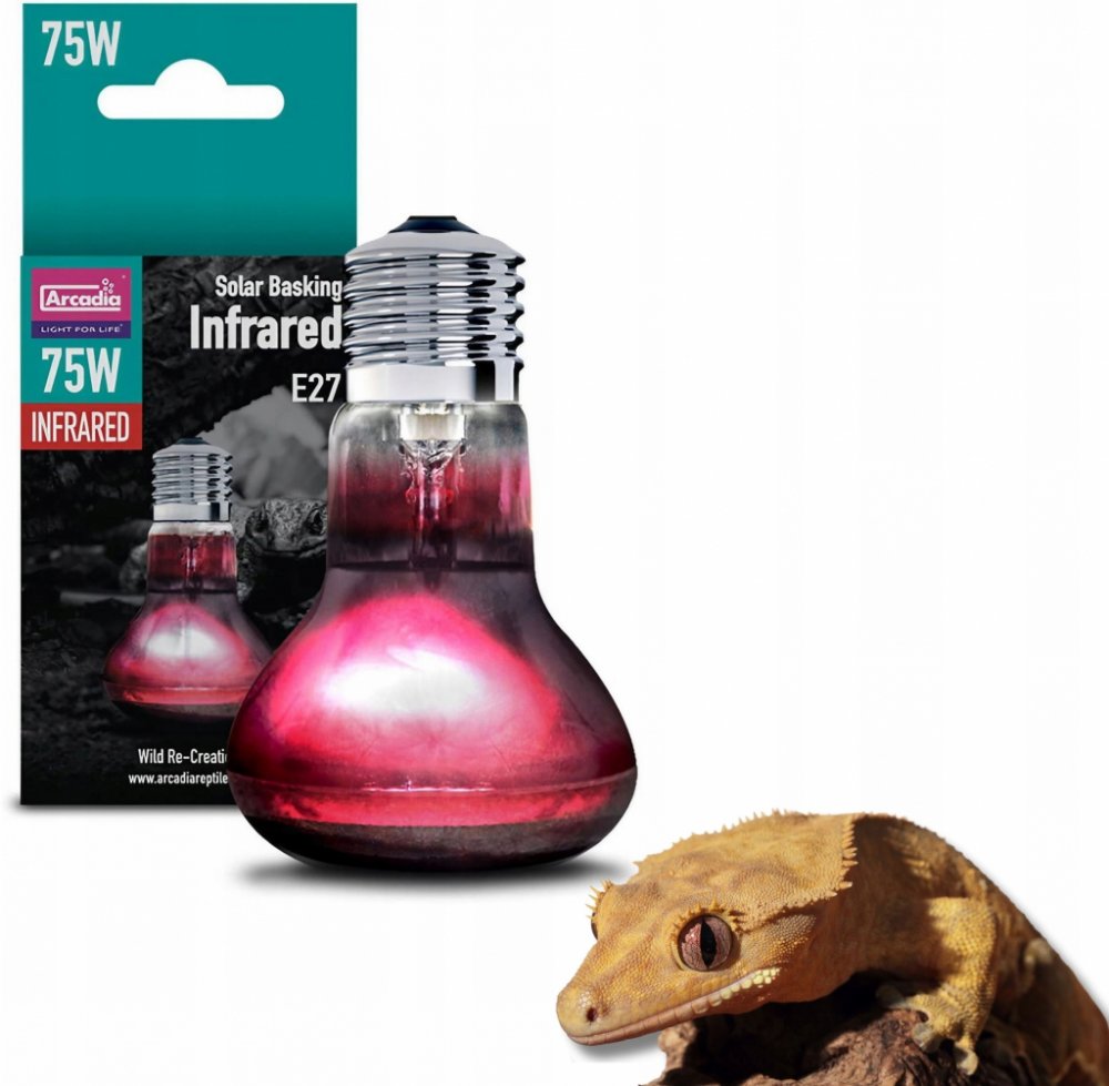 Žárovky Arcadia Solar Basking Infrared neposkytují UVB, jsou určeny pouze k vytvoření lokálních teplých míst. Vždy mějte na paměti, že většina druhů plazů potřebuje kvalitní zdroj UVB záření.