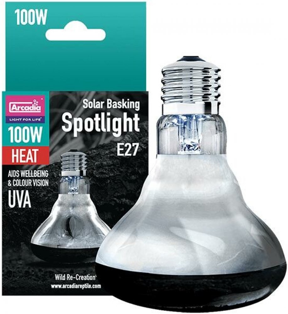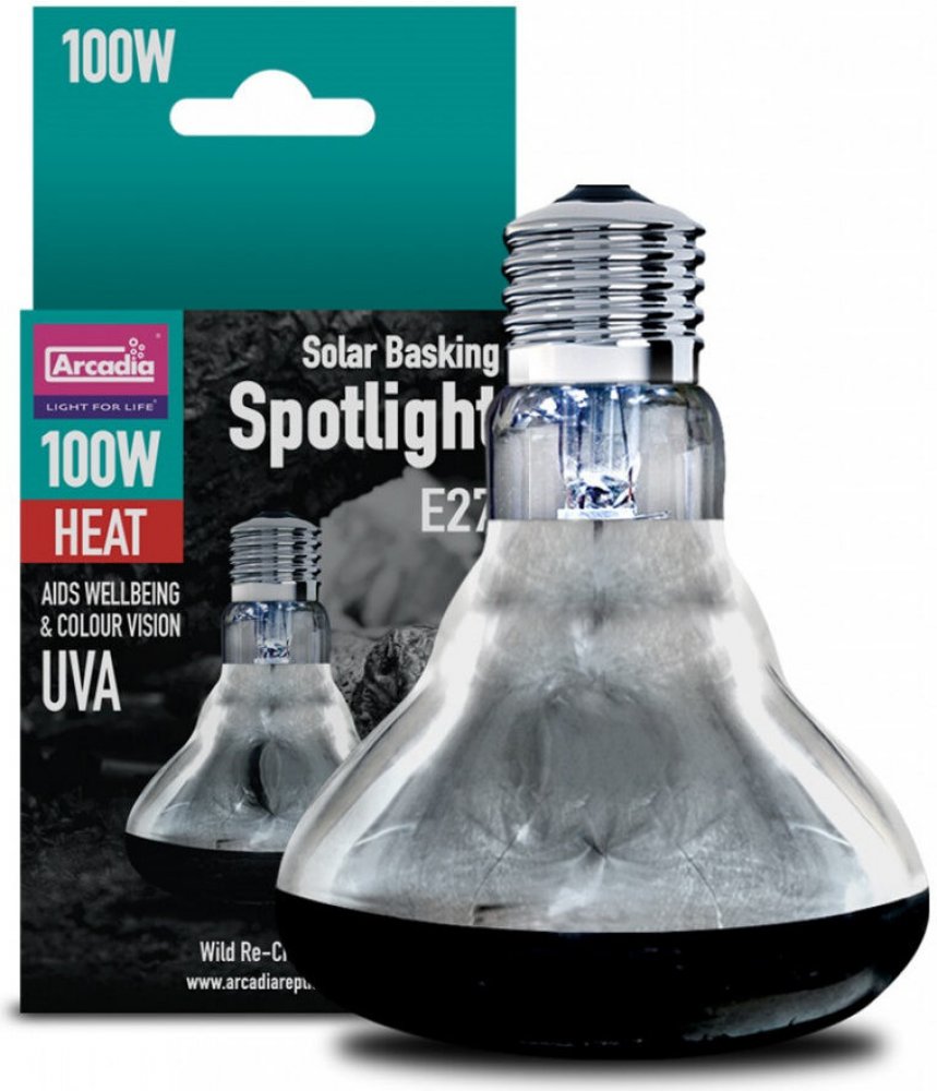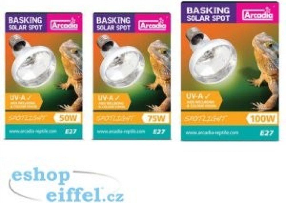 Arcadia Basking Solar Spot 100W - Bodová výhřevná žárovka. Poměr kvality a ceny je nesrovnatelný. Účelná novinka od Arcadia Reptile. - Bodové výhřevné žárovky Basking Solar Spot jsou ideální pro vytvoření lokálního místa pro slunění a vyhřívání, např. na jednotlivých kamenech nebo větvích, kužel světla je namířen na užší prostor pod žárovkou. Díky této výhřevné žárovce získáme dodatečný zdroj tepl...