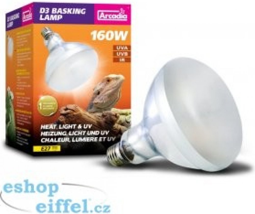 Arcadia D3 Basking Lamp je jedinečnou výbojkou pro osvětlení terárií, která poskytuje dostatek UVB záření, zároveň také světlo a teplo. Nepotřebuje ke svému provozu předřadník!