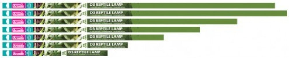 Zářivky Arcadia D3 a D3+ jsou vyráběny firmou Arcadia s velkým důrazem na zdraví zvířat. Tato evropská firma je právem pyšná na to, že vyvinula zářivky technologie T8 s nejlepším výdejem světla a UV záření na světě. Zářivky Arcadia mají opravdový obsah UVB 6% resp. 12%. Tento obsah UVB je měřen až po prvních 100 hodinách svícení zářivek. Můžeme vás ujistit, že pořízením zářivek Arcadia získáte to nejlepší z technologie T8 pro své chovance, co si lze za peníze koupit. Zářivky Arcadia jsou efektivní po celý jeden rok a udrží vaše zvířata v tip top kondici.
