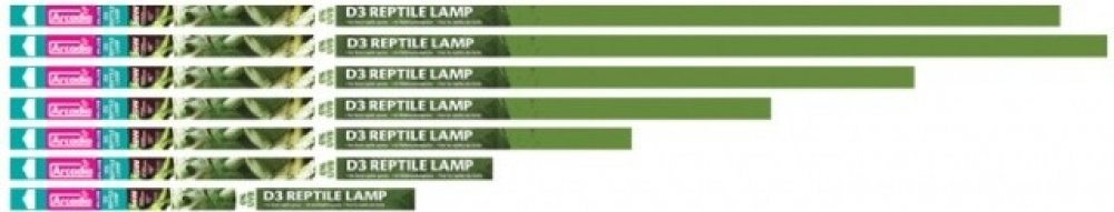 Zářivky Arcadia D3 a D3+ jsou vyráběny firmou Arcadia s velkým důrazem na zdraví zvířat. Tato evropská firma je právem pyšná na to, že vyvinula zářivky technologie T8 s nejlepším výdejem světla a UV záření na světě. Zářivky Arcadia mají opravdový obsah UVB 6% resp. 12%. Tento obsah UVB je měřen až po prvních 100 hodinách svícení zářivek. Můžeme vás ujistit, že pořízením zářivek Arcadia získáte to nejlepší z technologie T8 pro své chovance, co si lze za peníze koupit. Zářivky Arcadia jsou efektivní po celý jeden rok a udrží vaše zvířata v tip top kondici.