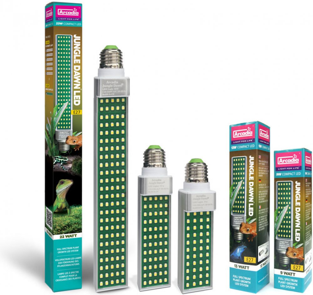 Jungle Dawn LED vyzařuje světlo s optimální teplotou 6.500–7000K, která je ideální pro neskutečně bujný růst rostlin. Pomocí tohoto revolučního LED osvětlení dosáhnete perfektních světelných podmínek v teráririích, viváriích, paludáriích i pokojích s rostlinami. Určeno do objímek E27.