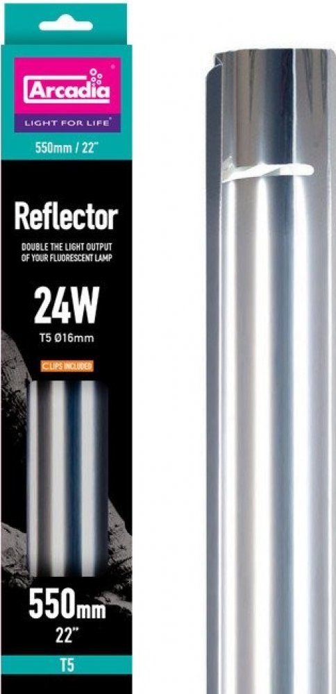 Kvalitní hliníkové reflektory pro zářivky T5. Reflektory pro zářivky typu T5 jsou vyrobeny z kvalitního hliníku. Kromě ochranné funkce zářivky jsou důležité pro správné směrování světla a jeho znásobení. Vhodný reflektor nejen namíří světlo ze zářivky požadovaným směrem (tj. dovnitř terária či akvária na zvířata), ale také znásobí výdej světla až o 200%, protože světlo a UVB vyzařované po celém okruhu zářivky je odraženo a a dostane se tedy přesně tam, kde potřebujeme. Doporučujeme používat reflektory s každou zářivkou.