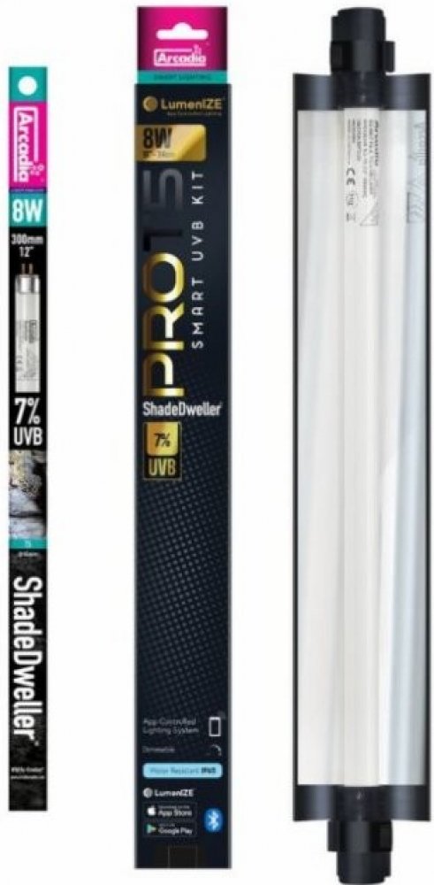 LumenIZE je nová řada svítidel od přední značky Arcadia. Tato vylepšená zářivková svítidla T5 osazená UVB trubicí navazují na svého oblíbeného předchůdce Arcadia PRO T5 UVB Kit. LumenIZE se kromě mnoha vylepšení zaměřuje především na co nejvěrnější napodobení přirozených podmínek a na úsporu elektrické energie. Zlepšení energetické účinnosti je dosaženo díky možnosti stmívání přes mobilní aplikaci. Kromě úspory energie máte možnost zvířatům poskytnout pozvolné rozsvěcení a zhasínání světel. Předcházíte tak nepříjemnému náhlému rozsvěcení a zhasínání. Navíc mají přirozené změny svítivosti vliv na celkové zdraví plazů, jejich žravost, hormonální funkce a mnoho dalšího. Pro dosažení nejlepšího výsledku doporučujeme kombinovat LumenIZE PRO T5 UVB Kit se zdrojem denního světla Arcadia LumenIZE Jungle Dawn LED BAR.