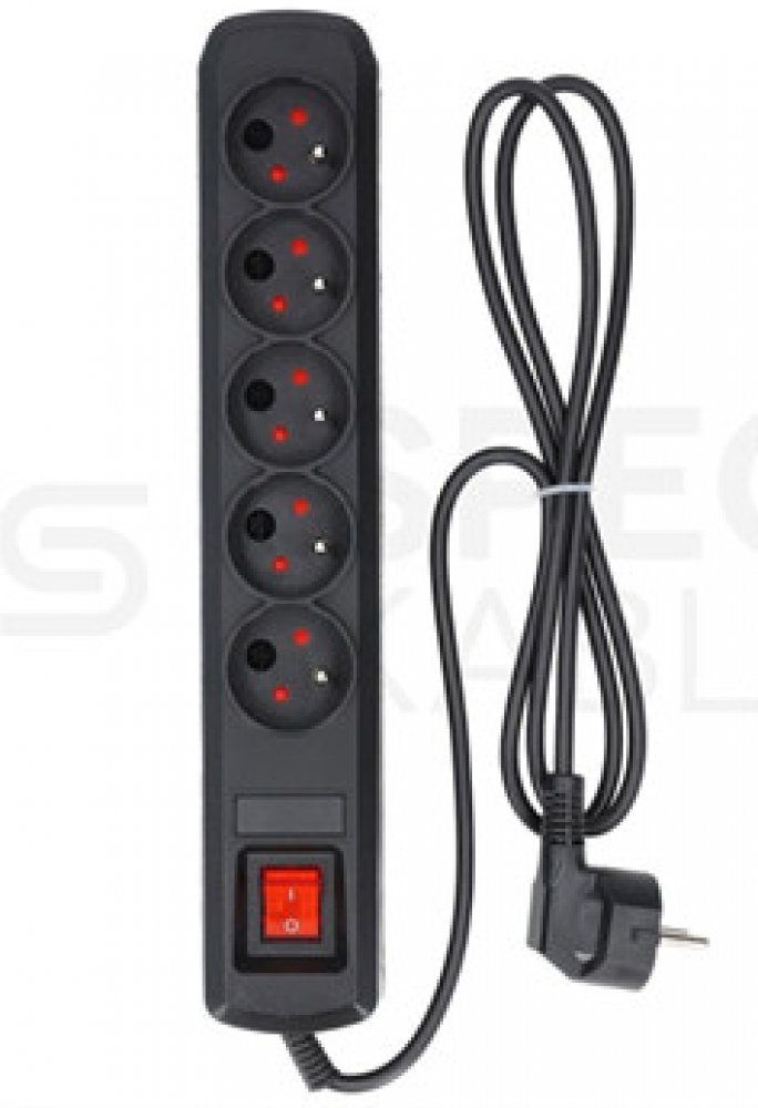 ARCON R5 černá přepěťová ochrana prodlužovací lišta 5 zásuvek 230V 10A 5m