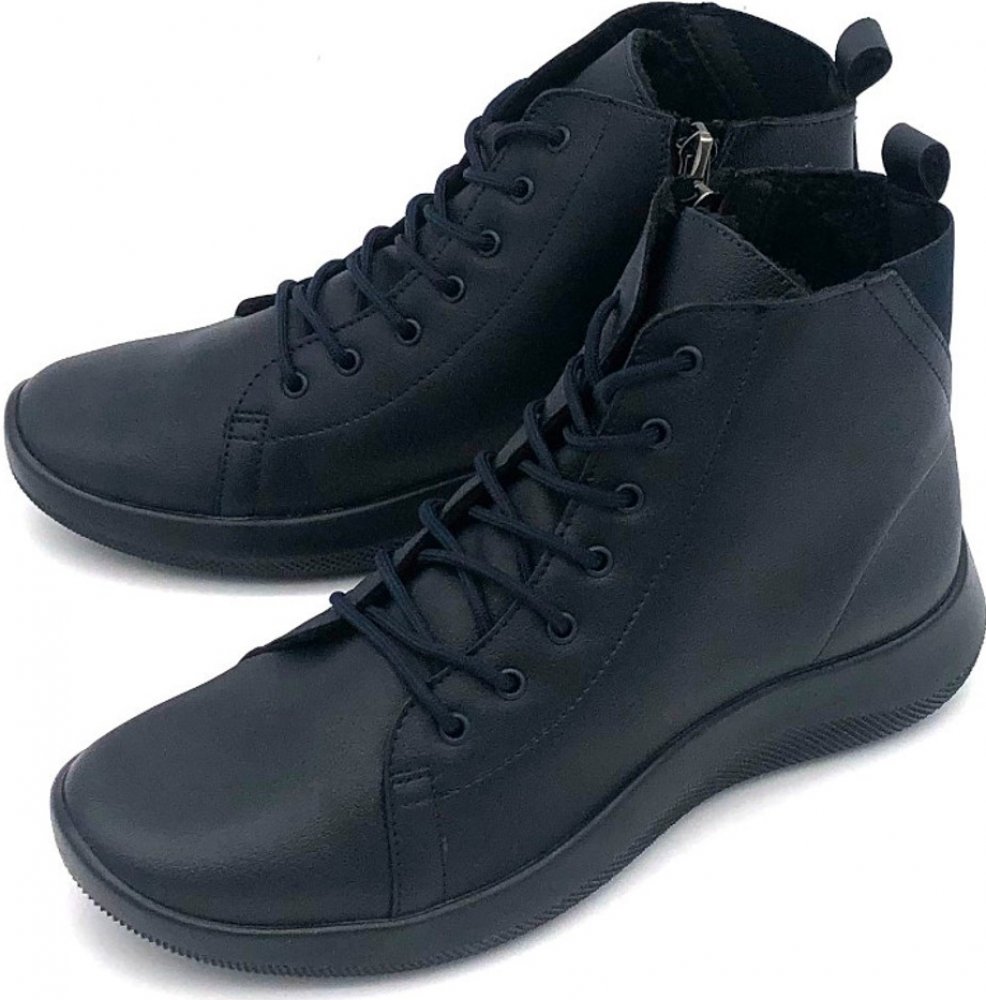 Dámská kotníková obuv vyrobená z kvalitní syntetiky, vnitřek obuvi tvoří textilní podšívka s krátkým chlupem a komfortní syntetická stélka. Obuv je vhodná na problematické chodilo jako jsou haluxy, kladívkové prsty a jiné nesouměrné vady a také včetně širšího chodidla. Snadné nazouvání zajišťuje klasické šněrování a zip na vnitřní straně obuvi.