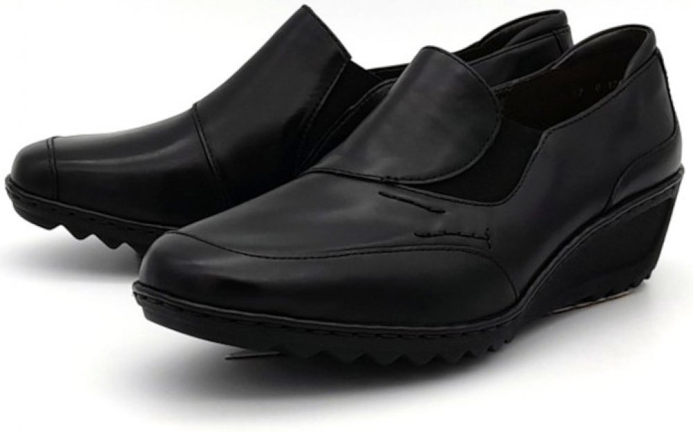 Dámské kožené polobotky vyrobené z hladké kůže. Vnitřek obuvi je tvořen textilní podšívkou a textilní vyměkčenou stélkou. Snadné nazouvání zajišťují dv elastické pásky v nártové části obuvi.
