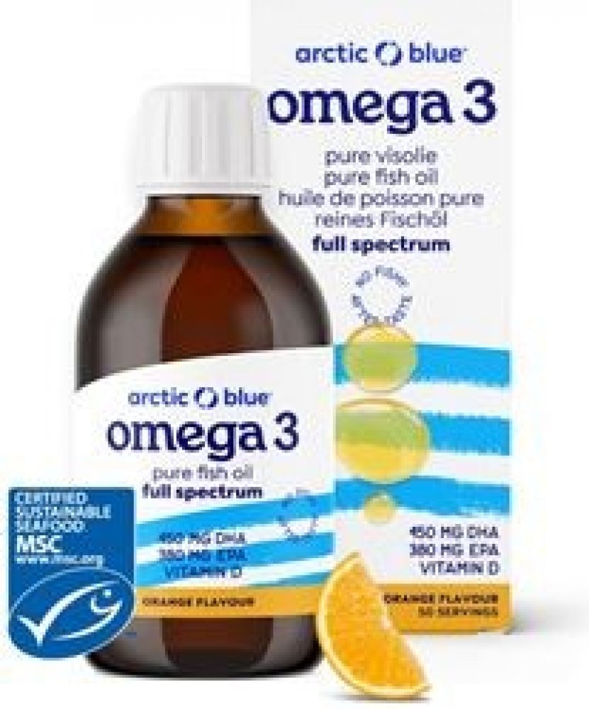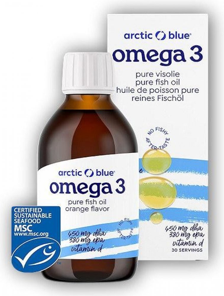 Arctic Blue tekuté 150.0 ml srdce unisex Arctic Blue pro všechny perorální od 1 roku Přírodní pomerančová Norsko omega-3 mastné kyseliny srdce a cévy 30 830.0 mg 400.0 IU Kdykoliv 1 za den Nespecifikováno s vitamínem D