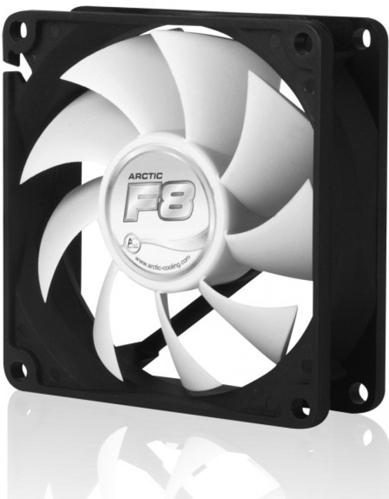 F8 ARCTIC je upraven tak, že celkově zlepšil proudění vzduchu a omezil hlučnost. Většina 80mm a 92mm ventilátorů je standartně vybavena 7 lopatkama, ale Arctic F8 jich má 9 a to způsobuje lepší efektivitu proudění vzduchu.