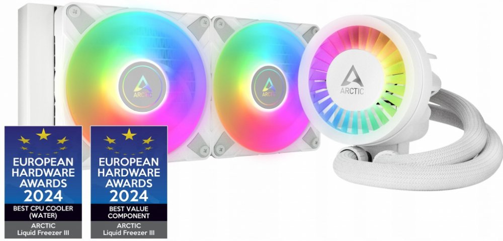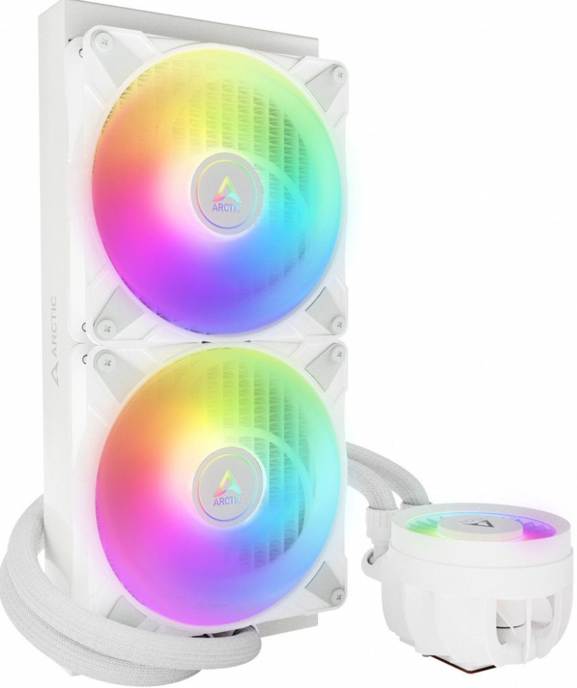 ARCTIC Liquid Freezer III 280 A-RGB White patří mezi nejpokročilejší vodní chladiče nové generace. Využívá vylepšené čerpadlo s nižší hlučností, silnější měděnou základnu a integrovaný 60mm VRM ventilátor pro chlazení napájecí kaskády. Třetí generace chladiče Liquid Freezer přináší o až 20 % vyšší efektivitu oproti předchozí verzi II.