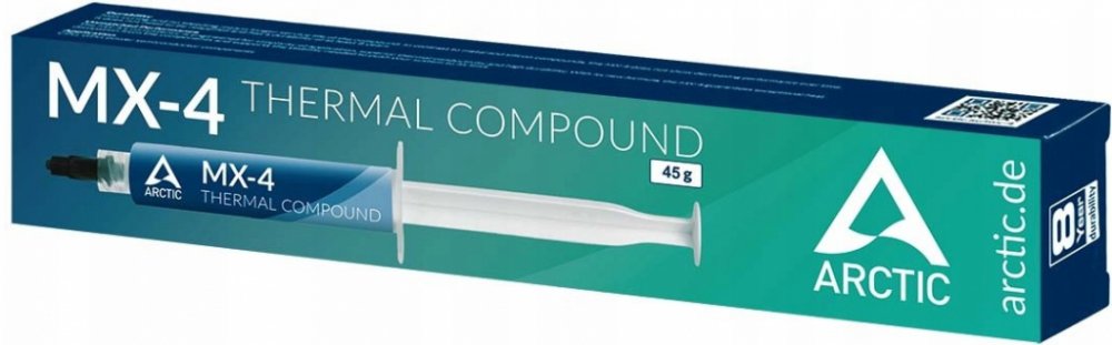 Máte v plánu postavení nového PC? Pro ochranu CPU v počítači před jeho přehřátím slouží hned několik prvků. Jedním z nich je i ARCTIC MX-4 Thermal Compound (45g) o hmotnosti 45 g. Tato teplovodivá pasta je určena k vylepšení procesu chlazení CPU Zlepšuje totiž kontakt obou dílů a tím napomáhá prostřednictvím snížení teploty k prodloužení životnosti obvodů. Tato teplovodivá pasta ARCTIC dokáže vylepšovat výkon až 8 let. Podstatné přednosti teplovodivé pasty ARCTIC MX-4 Thermal Compound (45g) Hmotnost teplovodivé pasty: 45 g Obsah balení: pasta ARCTIC MX-4 Thermal Compound (45g) nemá ve složení metalické částice Tento typ disponuje nulovou elektrickou vodivostí Pasta funguje 8 let Tepelná vodivost této pasty činí 8,5 W/mK Hustota pasty je 2,5 cm³ Viskozita pasty ARCTIC MX-4 Thermal Compound (45g) dosahuje 870 Pas