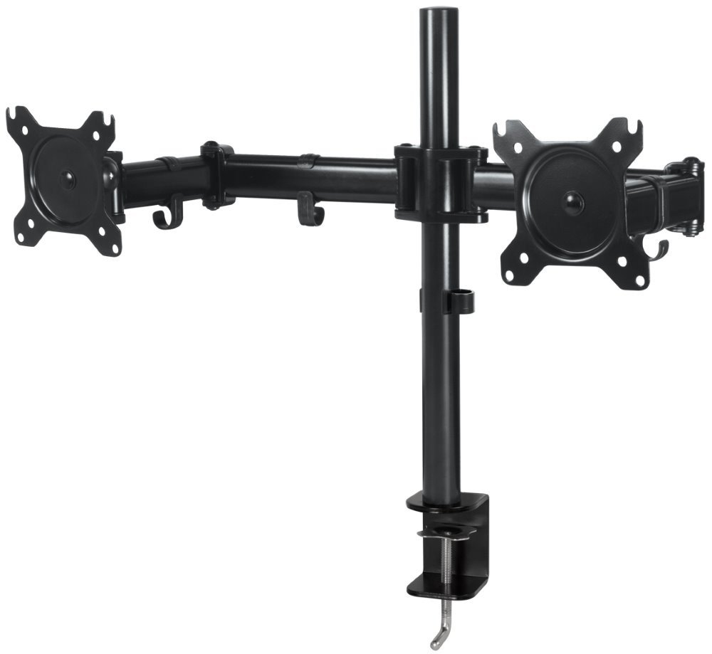 Nastavitelný držák pro dva monitory ušetří místo na pracovním stole. Držák je vhodný pro ploché LCD monitory o velikosti úhlopříčky 13" až 28" (pro ultraširoké max. 25") a hmotnosti do 2× 7,5 kg. Umožňuje snadné nastavení optimální výšky, náklonu i otočení monitorů. Snadno se připevní pomocí svorky na desku stolu. Intuitivní systém správy kabeláže minimalizuje nepořádek.