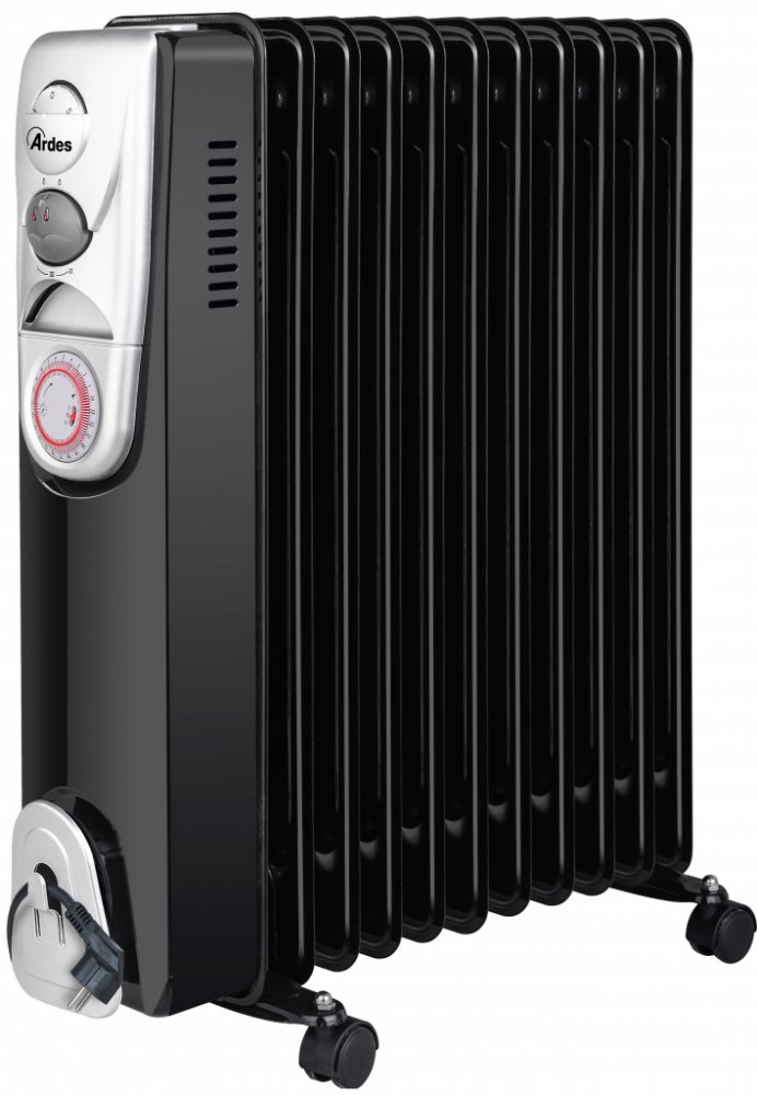 Olejový radiátor ARDES je nezávislou a přenosnou jednotkou, která se obejde bez připojení k topnému systému. Celkem 3 úrovně výkonu přináší lepší přizpůsobení aktuálním podmínkám. Teplotu si můžete nastavit podle vašich preferencí snadno a intuitivně pomocí mechanického ovládání bez složitých funkcí. Klíčové vlastnosti olejového radiátoru Ardes 4R11BTE Olejový radiátor ARDES nevyžaduje připojení k topnému systému Žebrový typ konstrukce 3 úrovně výkonu Obsahuje 11 topných článků pro vyvážené rozložení tepla Mechanické ovládání bez složitých funkcí Transportní kolečka umožňují pohodlný přesun radiátoru Černá barva Komfortní vytápění s jistotou bezpečného provozu Termostat se hodí pro přesné nastavení požadované teploty. Radiátor se bude snadněji přesouvat s pomocí transportních koleček. Pomocí časovače můžete nastavit, kdy má radiátor začít nebo skončit s topením. Provedení: volně stojící Rozměry: 65 × 48 × 24 cm (vך×h) Hmotnost: 10,9 kg Příkon: 2500 W