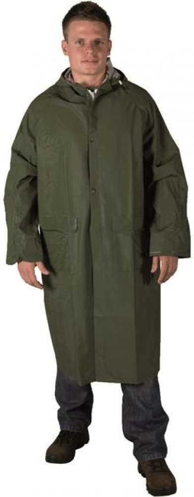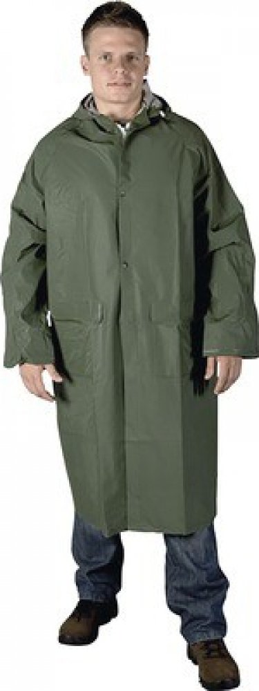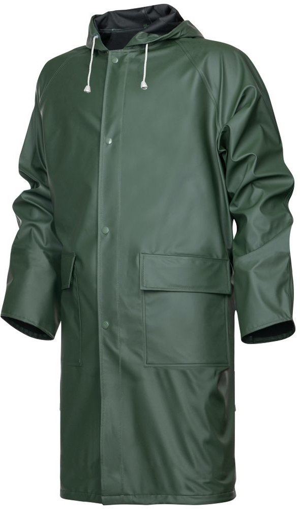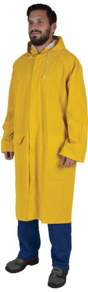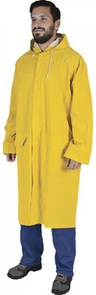 PVC je optimálním materiálem pro výrobu ochranných plášťů. Nabízí vysokou odolnost vůči vodě a vlhkosti společně s dostatečnou pevností proti mechanickému poškození. Zároveň je lehký a dobře poddajný. Plášť CYRIL plně využívá výhody PVC a představuje kvalitně upravený ochranný oblek pro pohyb v nepříznivém počasí. Pláště je možné využít také v potravinářském nebo chemickém průmyslu. Plášť je navržený v dostatečné délce 120 cm. Dobře ochrání tělo i část nohou. Snadno se obléká i svléká. Komfortní nošení zvyšují praktické detaily. Zadní díl řeší odvětrávání, zlepšuje přirozenou cirkulaci vzduchu a napomáhá odvodu potu od pokožky a nepříjemnému pocitu prochladnutí. Přední díl je doplněný o dvě dostatečně velké kapsy, přístup do kapes chrání všitá patka. Plášť má šité a svařené švy, které zvyšují odolnost ochranného oblečení a předchází pronikání vlhkosti namáhanými částmi. Zapínání řeší zip s druky. Plášť je navíc doplněný kapucí, kterou můžete stáhnout podle potřeby pevnou tkanicí. Pláště jsou dostupné v řadě velikostí M až XXXL.