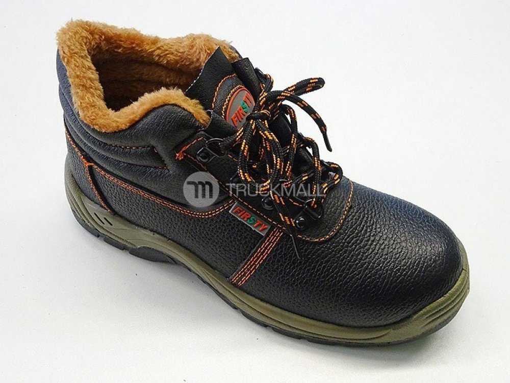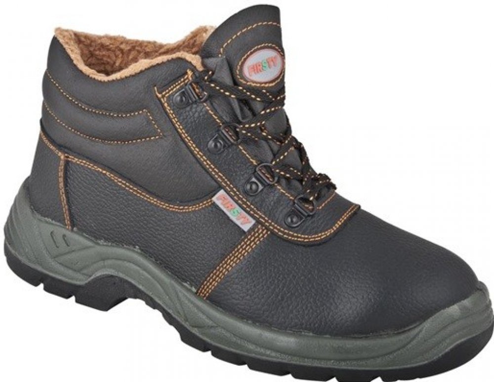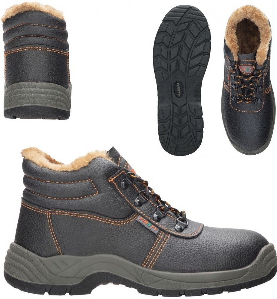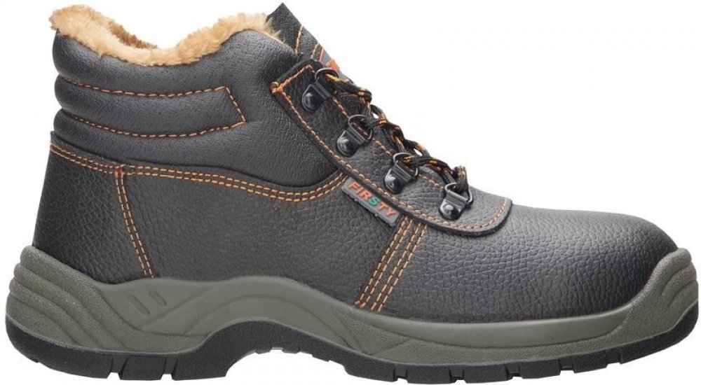 Kotníková obuv zateplená umělým kožíškem, s ocelovou špicí a planžetou, hydrofóbní úprava, měkčená bandáž pro pohodlné nošení, podšívka a kontrastní prošití v oranžové barvě, PU2D podešev je odolná olejům, pohonným hmotám a kontaktnímu teplu do 110°C, antistatická, materiál: hovězí useň, barva: černo-oranžová. Protiskluznost podešve: SRA. Velikosti: 36 - 48