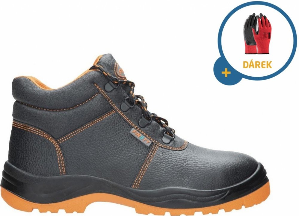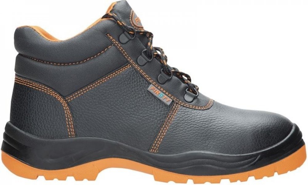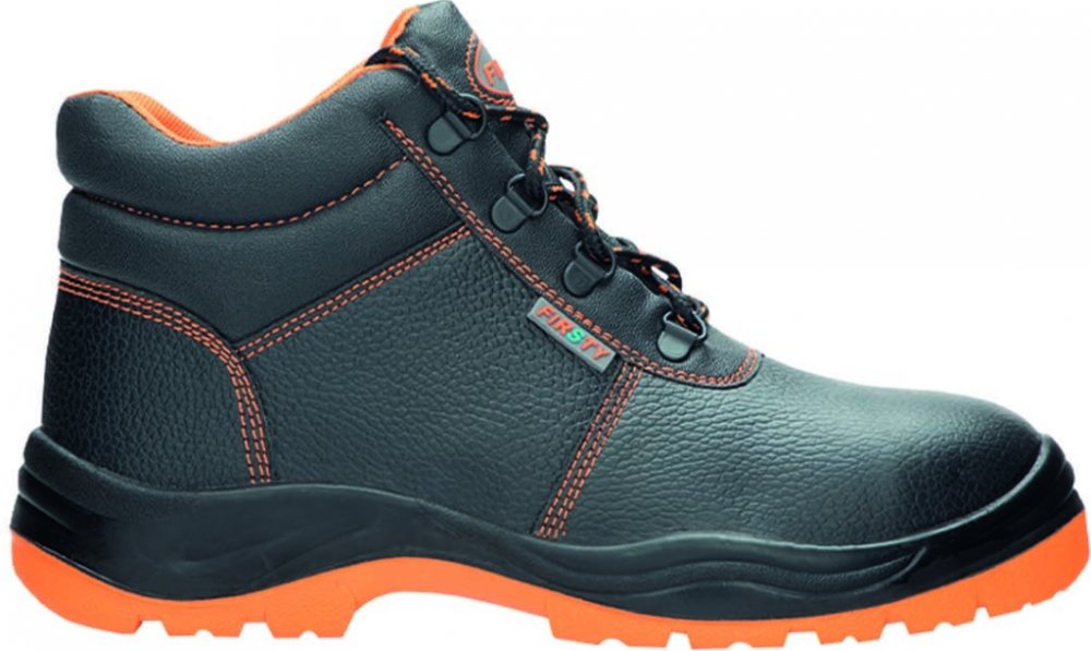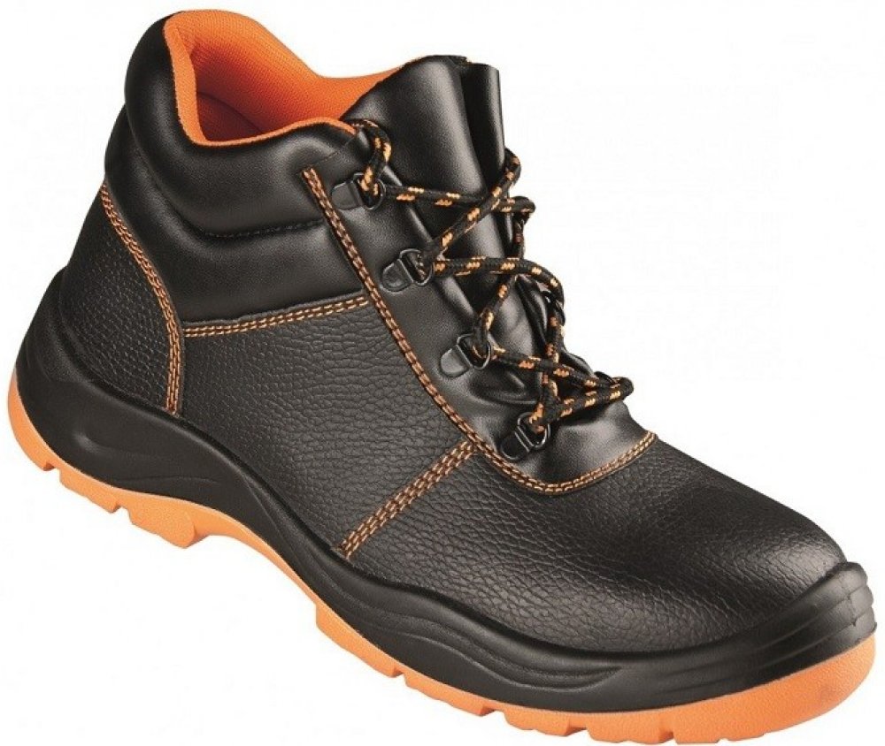 Bezpečnostní kotníková obuv s ocelovou špicí a planžetou, hydrofóbní úprava svršku, podešev odolná vůči kontaktnímu teplu do 300°C, materiál: hovězí useň, podešev: PU/guma. Norma: EN 20345. Váha: 722 g (platí pro půlpár obuvi ve velikosti 42). Barva: černo-oranžová. Velikosti: 36 - 48.