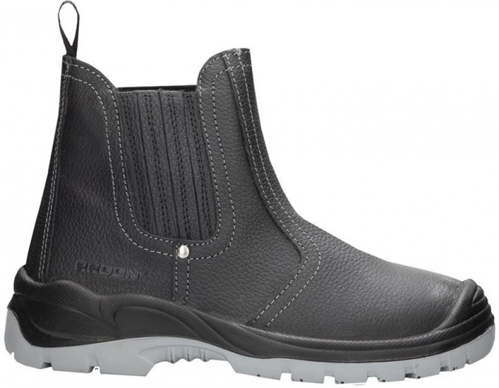 - v oblasti kotníku bezpečnostní boční vsadky z kombinace gumy a kůže pro okamžité vyzutí v případě vniknutí okuje do obuvi