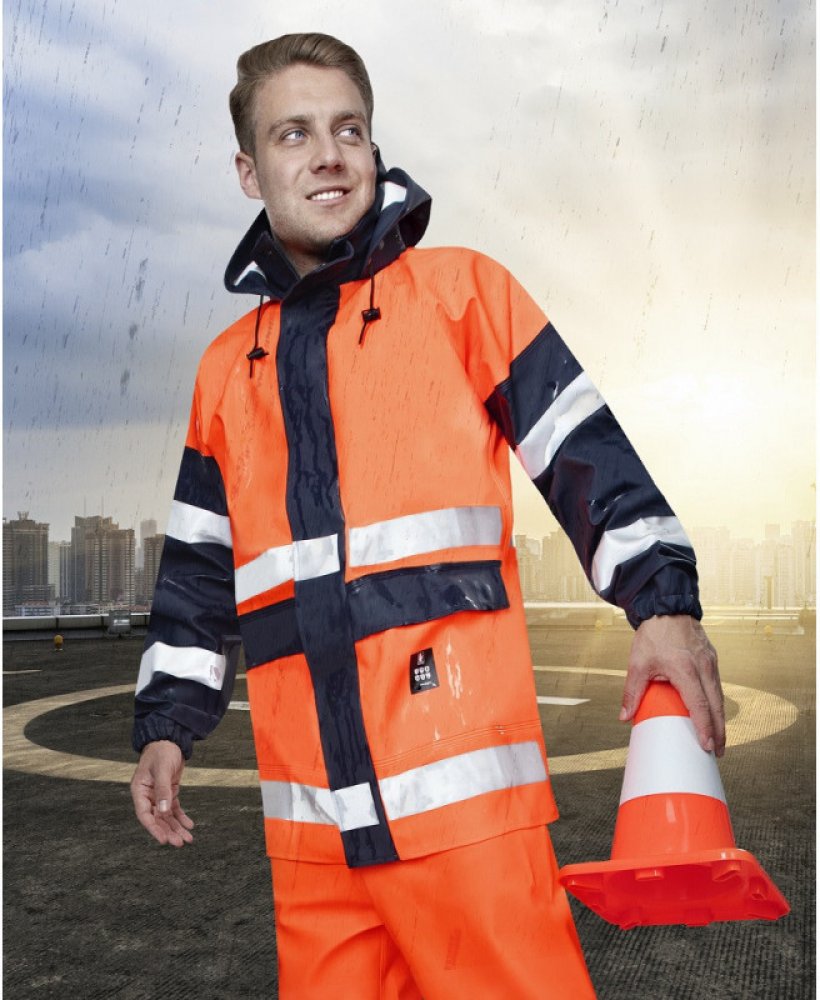 - vyrobeno z technologicky pokročilého materiálu Plavitex Multi, který poskytuje nejen velmi dobrou ochranu proti vodě a větru, ale také ochranu proti antistatickým výbojům, omezuje šíření hoření a výrazně zvyšuje viditelnost díky reflexním prvkům