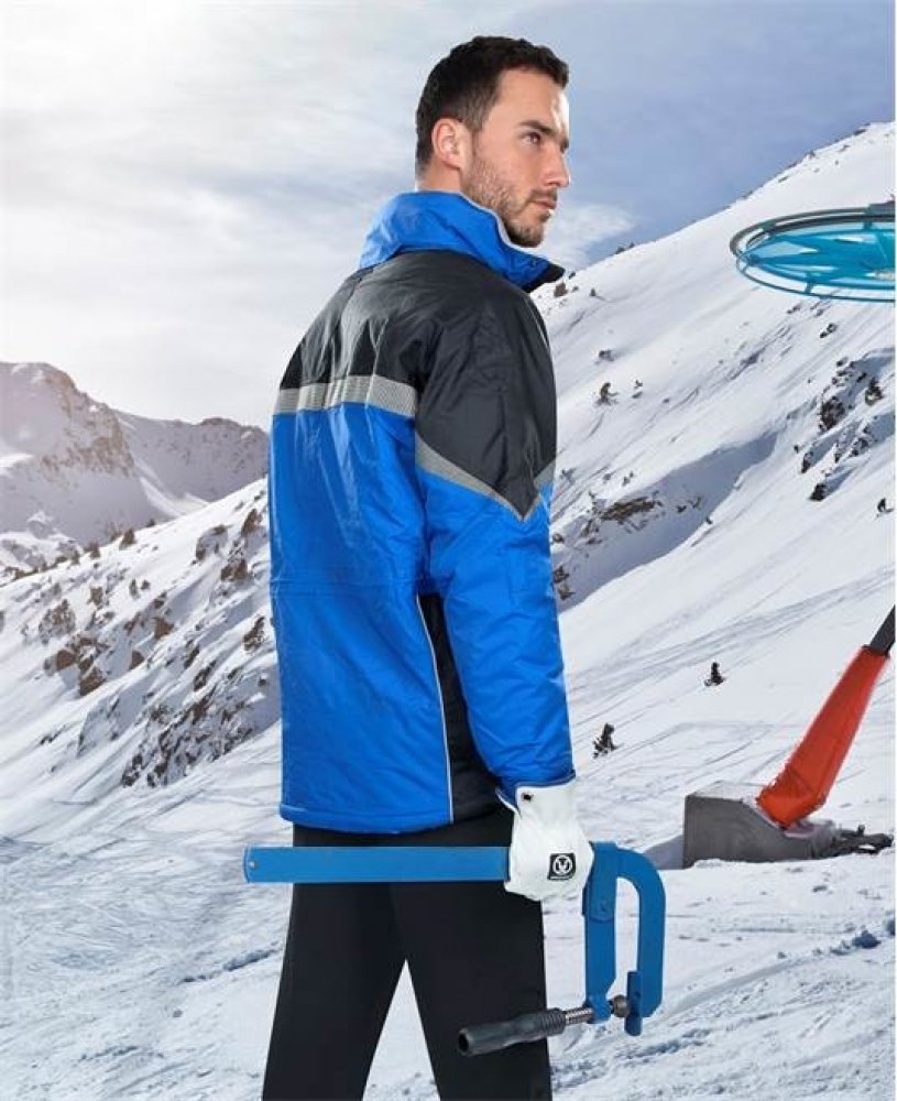 Hřejivá a lehká zimní pánská bunda, zapínání na zip krytý légou, regulace šířky rukávů, zajímavé reflexní aplikace na předním i zadním dílu, kombinace kapes na zip a kapes na suchý zip, s prošívanou nylonovou podšívkou a zateplením, voděodolnost 3 000 mm, paropropustnost 3 000 mm, materiál: 228 T nylon taslan s PU zátěrem, 200 g/m2. Barva modrá. Velikosti: M - XXXXL.