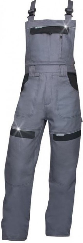 Zkrácené klasické montérkové kalhoty s laclem sportovního střihu. Mají zapínání na knoflíky na levém boku. Pro pohodlné nošení je v pase guma a šle jsou také elastické. Obsahují několik bočních multifunkčních kapes na nářadí, jednu na laclu a dvě zadní kapsy. Reflexní doplňky na nohavicích. Kolena jsou zesílená.