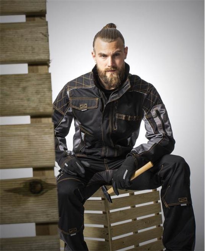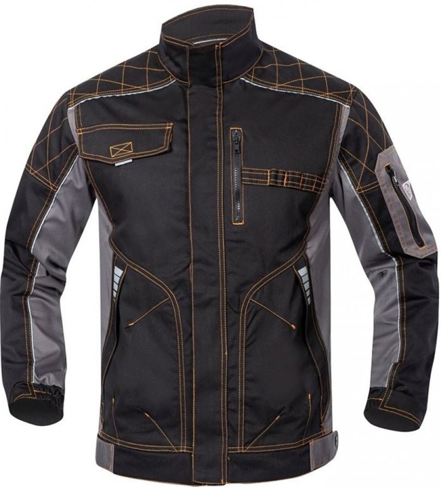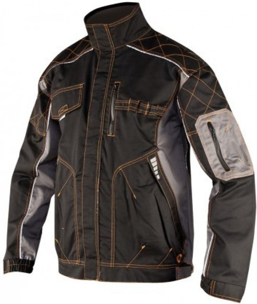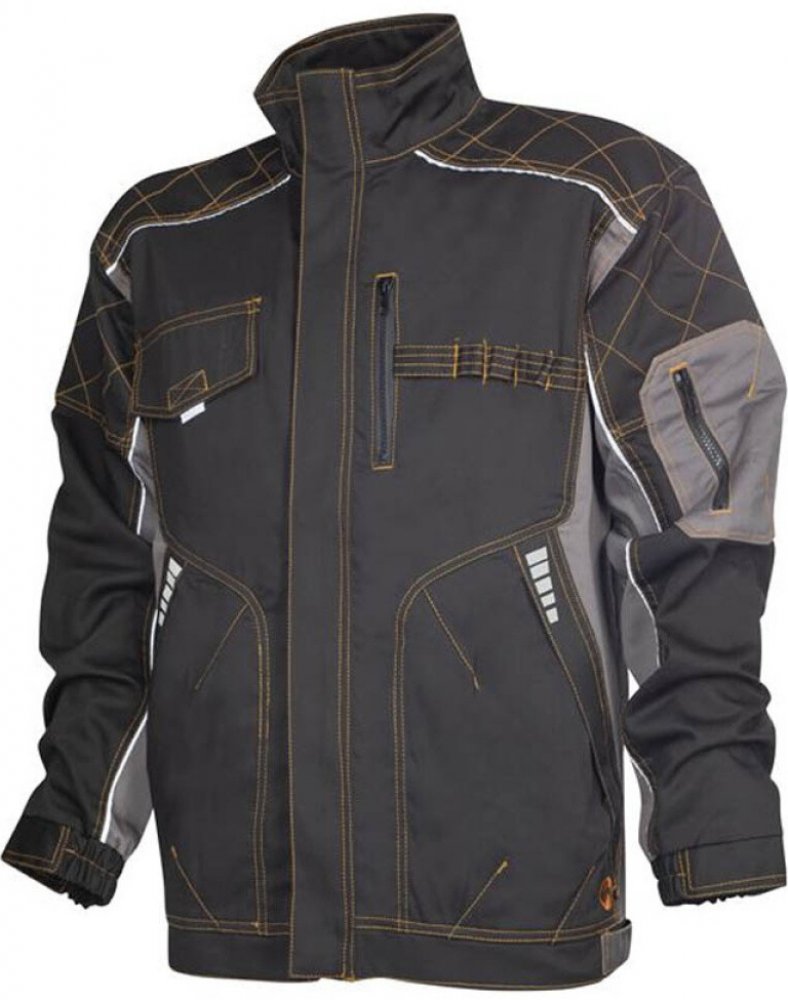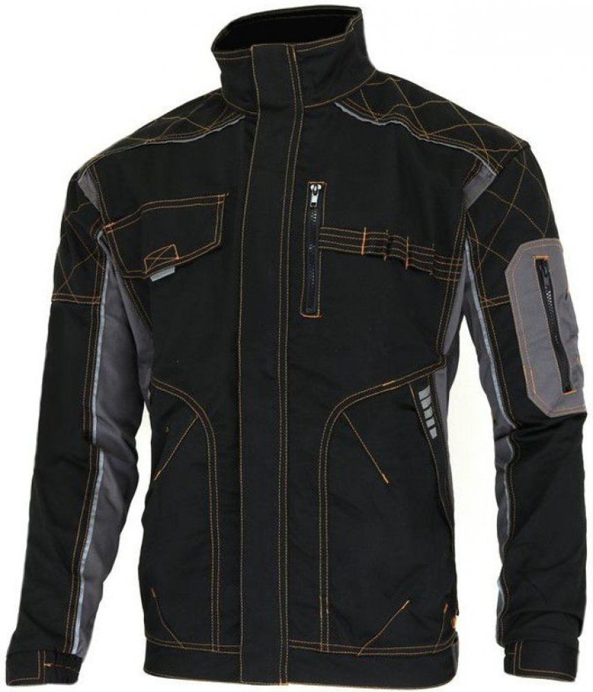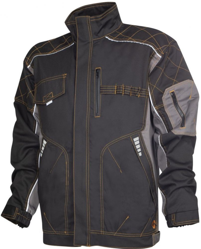 Zesílené prošívané sedlo riflovou nití, skryté odvětrávání zadního dílu, nastavitelná šírka rukávů, dvě náprsní kapsy, kapsa na zip, dvě spodní kapsy na zip s originálními stříbrnými reflexními pruhy a reflexními doplňky, materiál: kepr 60% bavlna, 40% polyester, 260 g/m². Barvy: šedá, hnědá, černá, červená, tmavě modrá, modrá, zelená. Velikosti: S - 4XL (barva zelená, tmavě modrá), S-5XL (barva šedá, hnědá, černá), 46-64 (barva červená, modrá). Velikost S=46, M=48-50, L=52, XL=54-56, XXL=58, XXXL=60-62, XXXXL=64, XXXXXL=66.