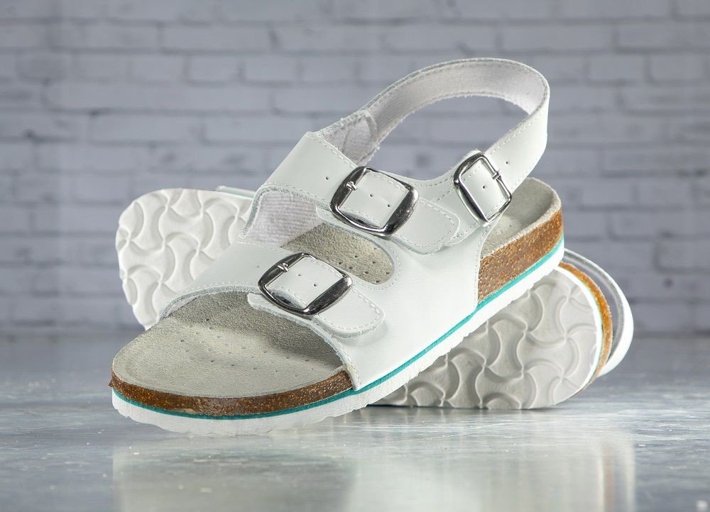 Korkové sandály se svrškem z materiálu action leather (štípaná kůže s povrchovou polyuretanovou úpravou), nastavitelná šířka nártu pomocí dvou kovových spon, prodyšná stélka s bohatou perforací, podešev kombinace korku, EVA pěny a vrstvy mechu, materiál: action leather, podešev: korek / EVA pěna. Norma: EN 20347* vybrané požadavky. Váha: 302 g (platí pro půlpár obuvi ve velikosti 42). Typy barevné...