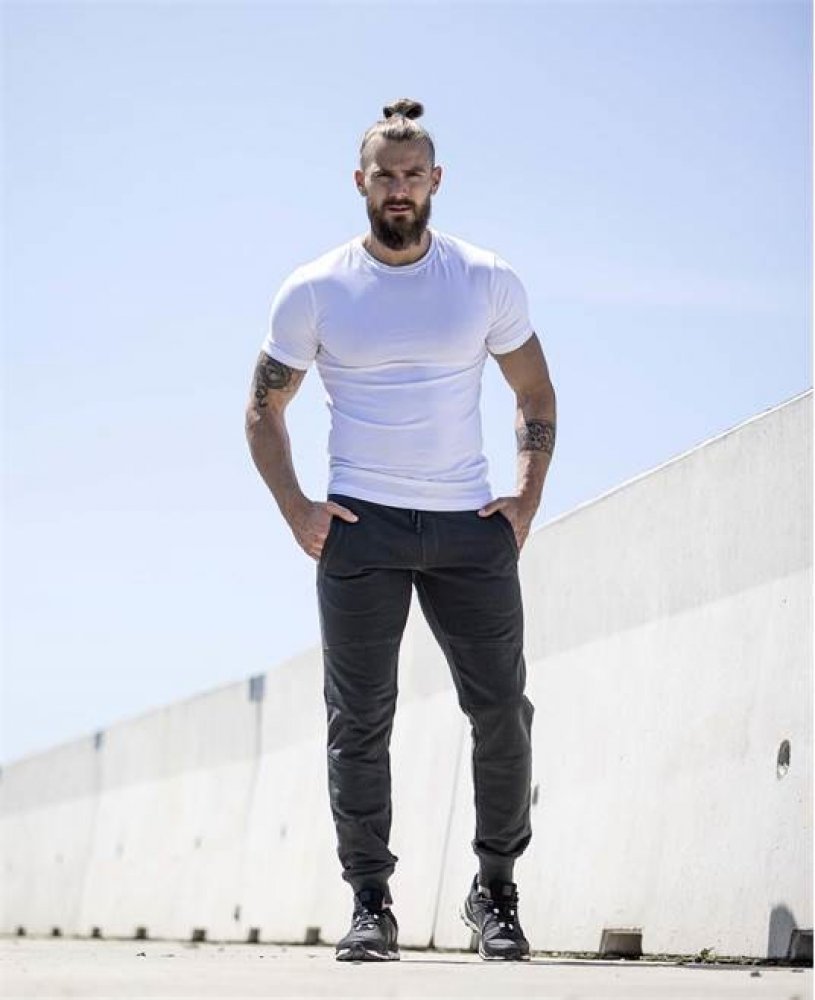 - pánské sportovní kalhoty s funkčním tvarováním nohavic v oblasti kolen