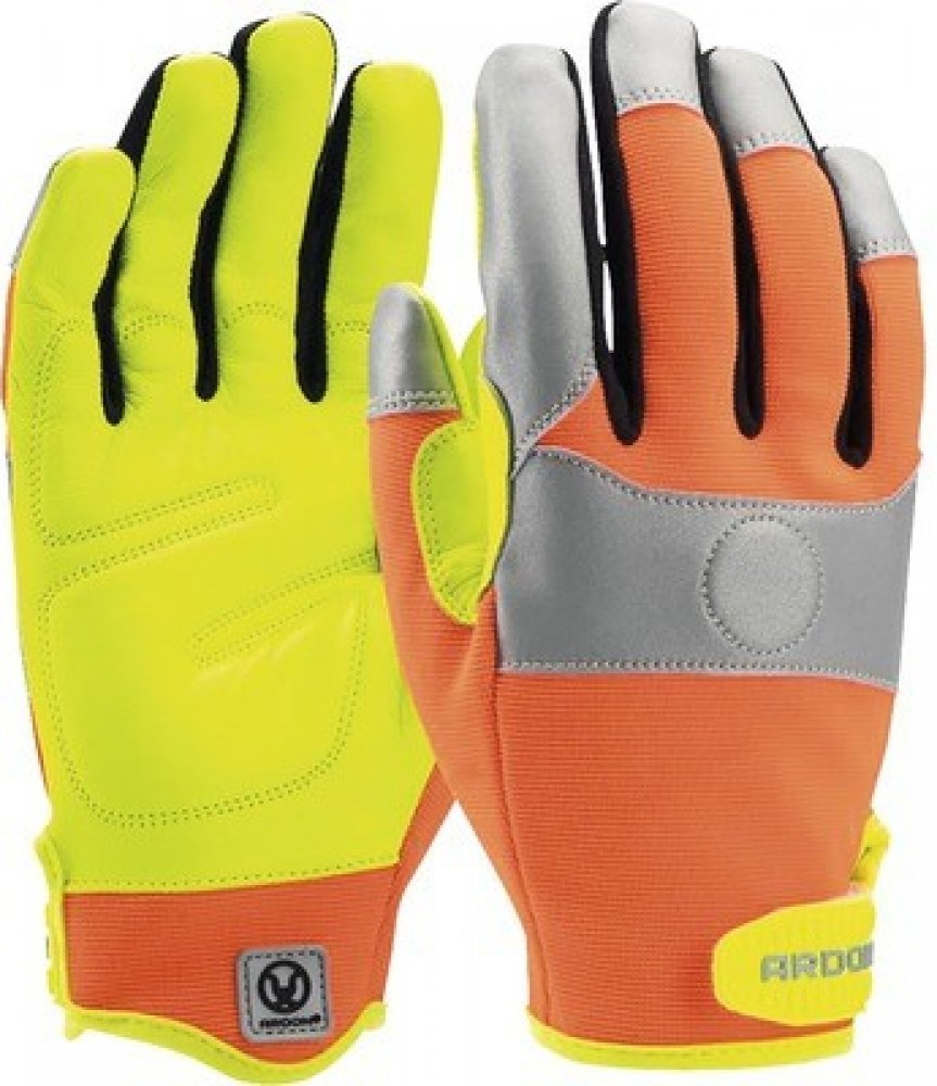 Praktické kombinované pracovní ochranné rukavice THUNDER MAGNETIC upoutají pohled na svůj výrazný vzhled. Ukrývají toho však mnohem více a představují funkční prvek pro bezpečnou práci v nejrůznějších odvětvích. Patří do II. bezpečnostní kategorie a poskytují dostatečnou ochranu proti mechanickým vlivům. Pracovní rukavice mají pevnou dlaň z kozinky ve výrazné žluté reflexní barvě. Perfektně tak chrání dlaň, ale zároveň poskytují dostatečnou citlivost při úchopu. Hřbet ochranných rukavic je ze spandexu v zářivé oranžové barvě. Nemusíte se ani bát, že je poztrácíte a zbyde vám pouze jedna. Na hřbetu je totiž praktický magnetek, díky kterému rukavice umístíte na kovové části na pracovišti a udržíte je pohromadě. Manžeta je opatřena suchým zipem pro přesné zapnutí kolem zápěstí, takže rukavice drží jako ulité. Při volbě správné velikosti zajistí dostatečnou ochranu a přesnost doplněnou o maximální viditelnost vašich rukou, aby vám je kolegové někde neskřípli a podobně. Pro ještě lepší viditelnost jsou rukavice doplněny o reflexní prvky. Montážní a volnočasové rukavice s reflexními prvky a magnetem, magnet v hřbetní části rukavic (viz. ilustrační foto), PVC puller ve tvaru loga pro prevenci roztržení při nasazování, zesílení mezi palcem a ukazovákem, pěnové vycpávky v dlaňové části, počet v balení: 12; počet v kartonu: 72, materiál: kozinka, spandex, reflexní páska, manžeta: suchý zip. Barva: oranžovo - žlutá. Norma: EN388:2016 2232X. Velikost: 9, 10.