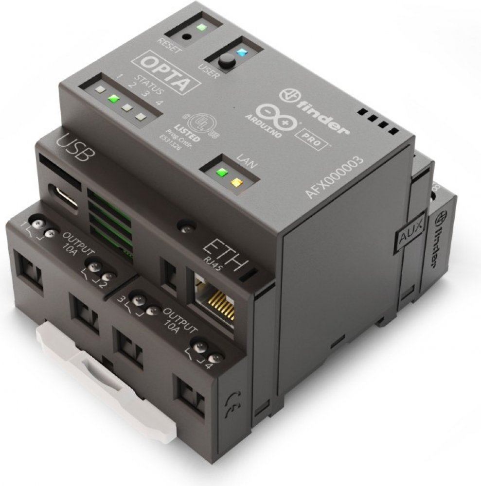 Arduino Opta je mikroPLC řadič, který podporuje průmyslové standardy IoT. Vznikl ve spolupráci se společností Finder, která vytváří zařízení pro průmyslovou automatizaci a automatizaci budov. Srdcem ovladače je dvoujádrový čip STM32H747XI ARM Cortex M7 + M4 , umožňující ovládání a monitorování v reálném čase a také implementaci aplikací preventivní údržby. Arduino Opta Lite je vybaveno ethernetový...