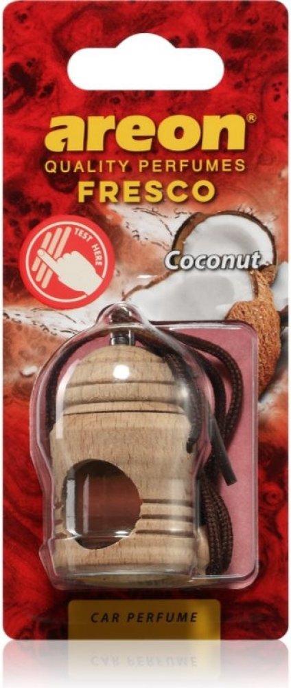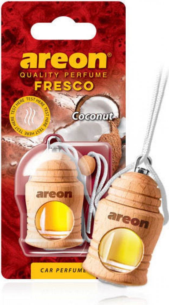 Osvěžovač AREON FRESCO Coconut okouzlí vaše smysly sladkou vůní čerstvého kokosu.