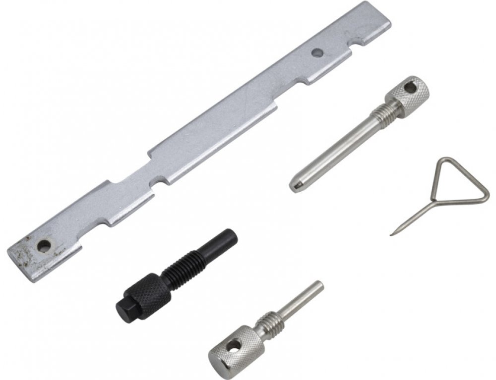 Přípravky na aretaci rozvodů (časování) benzínových motorů 16 V – QUATROS QS10658. Určeno pro zážehové pohonné jednotky 1.25, 1.4, 1.6, 1.7, 1.8, 2.0 a 2.3 16 V ve vozidlech Ford (Zetec), Mazda a Volvo. Vozy Ford: Fiesta, Puma, Focus, Focus C-MAX, Escort, Orion, Mondeo, Cougar, Courier, Tourneo, Transit, Fusion, Connect (1993-2010) Motory: benzín 1.25, 1.4, 1.6, 1.7, 1.8, 2.0 16 V (rozvod řemenem i řetězem) Kódy motorů: ALDA, AOBA, AOBC, AODA, AODB, AODE, AOWA, AOWB, ASDA, ASDB, CDBB, CGBA, CGBB, CHBA, CHBB, CJBA, CJBB, CSDA, CSDB, DHA, DHB, DHC, DHD, DHE, DHF, DHG, DYDF, EDBA, EDBB, EDBC, EDBD, EDDB, EDDC, EDDD, EDDF, EYDB, EYDC, EYDD, EYDE, EYDF, EYDG, EYDI, EYDJ, EYDL, EYPA, EYPC, F8JA, F8JB, FHA, FHB, FHD, FHF, FUJA, FUJB, FXDA, FXDB, FXDC, FXDD, FXJA, FXJB, FXJC, FYDA, FYDB, FYDC, FYDD, FYDH, FYJA, FYJB, FYJC, GZ, GZFA, GZFB, GZFC, HMDA, HWDA, HWDB, L1F, L1J, L1L, L1N, L1Q, L1T, L1V, L1W, M7JA, M7JB, N4JB, NGA, NGB, NGC, NGD, Q7DA, QQDA, QQDB, QQDC, RKA, RKB, RKF, RKH, RKJ, RKK, RTJA, RTJB, SEBA, SEWA, SHDA, SHDB, SHDC, SNJA, SNJB, SPJA, SPJC, STJA, STJB, SYDA, TBBA, TBBB, TBWA, TBWB, UTJA, YF Vozy Mazda: 121 (1995-2000), 2 (2002-2007), 3 (2003-), 5 (2005-), 6 (2002-), MX-5 (2005-), MPV (2002-2005), Tribute (2001-2004) Motory: 1.25, 1.4, 1.6, 1.8, 2.0 a 2.3 16 V Kódy motorů: DHA, F8JA, F8JB, FUJA, FUJB, FXJA, FXJB, FYJA, L3, L8, LF, YF Vozy Volvo: S40, V50 (2004-2010), C30 (2006-2010) Motory: 1.6, 1.8 a 2.0 16 V Kódy motorů: B4164S3, B4184S11, B42043S Souprava obsahuje: · 1x OEM 303-376B – pravítko na aretaci vačkových hřídelí, tzv. vaček (Alternativní OEM čísla: KM-953-A, 21-162B, 303-367, 303-376, KM-953 , KM-6628-A, 303-465, 303-1552, 9997151, 49UN303376) · 1x OEM 303-507 - aretace klikové hřídele, tzv. kliky (Alternativní OEM čísla: 21-210, 9997152, 49JE01061) · 1x OEM 303-748 - aretace klikové hřídele, tzv. kliky (Alternativní OEM čísla: 21-259, 49J E02 061, 999 7201) · 1x OEM 303-574 - aretace klikové hřídele, tzv. kliky (Alternativní OEM čísla: 21-163 , 49UN303574) · 1X OEM 303-1054 – čep na aretaci napínáku (Alternativní OEM čísla: T10115)