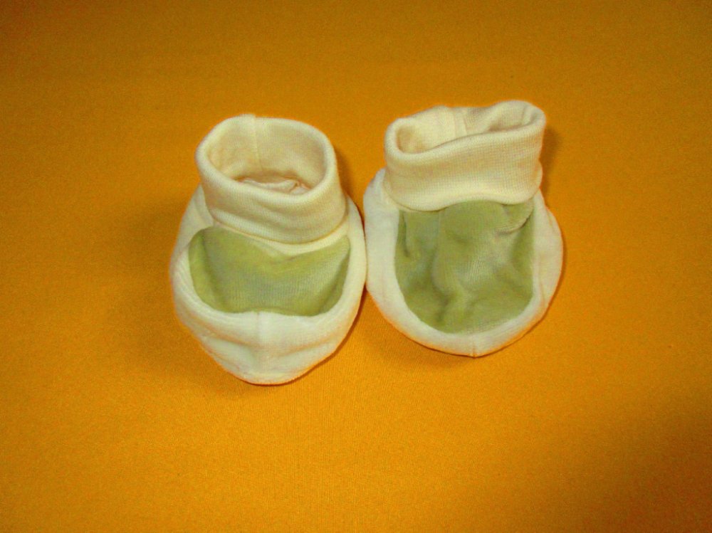 Kojenecké bačkůrky s vytvarovanou špičkou a patou jsou ušity z příjemného měkkého bavlněného sametu, který udrží nožičky miminka v teple. Aby bačkůrky nepadaly, mají kolem nožičky vysoký pružný lem, který se dá ohrnout na potřebnou délku. Délka spodní části od paty k špičce 8cm. Doporučený způsob praní: v pračce na 40ᵒC.