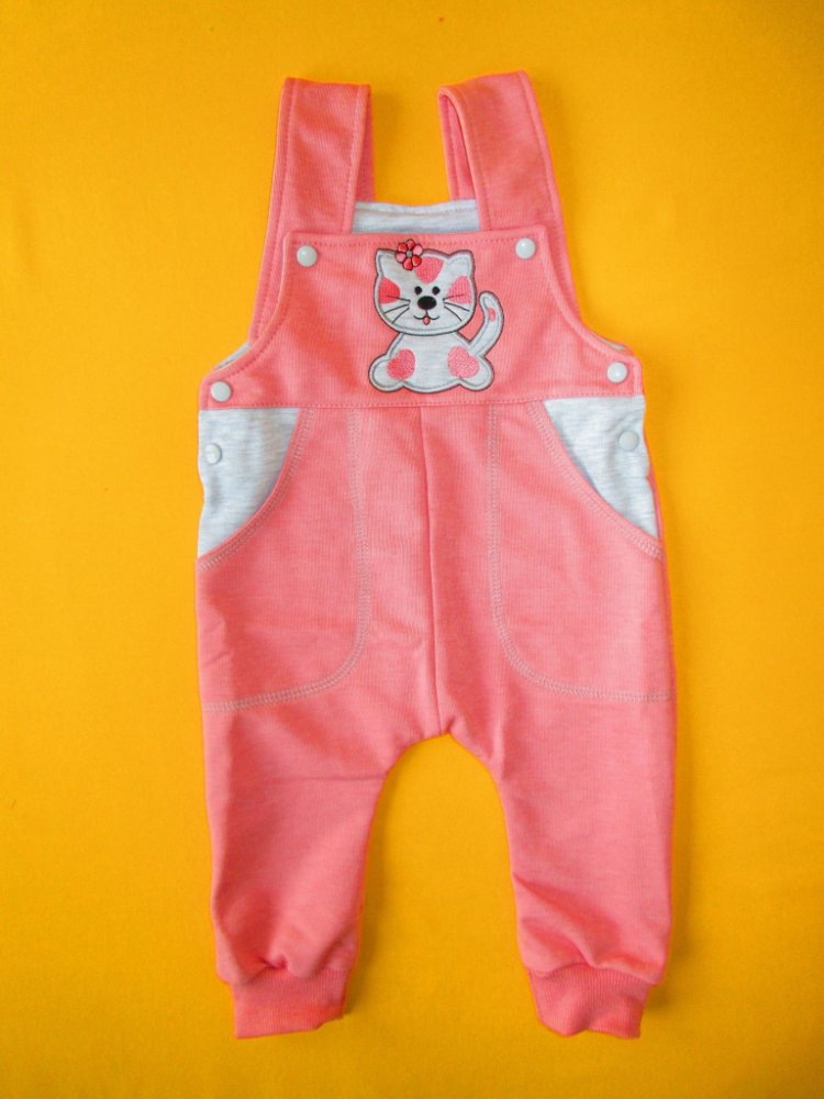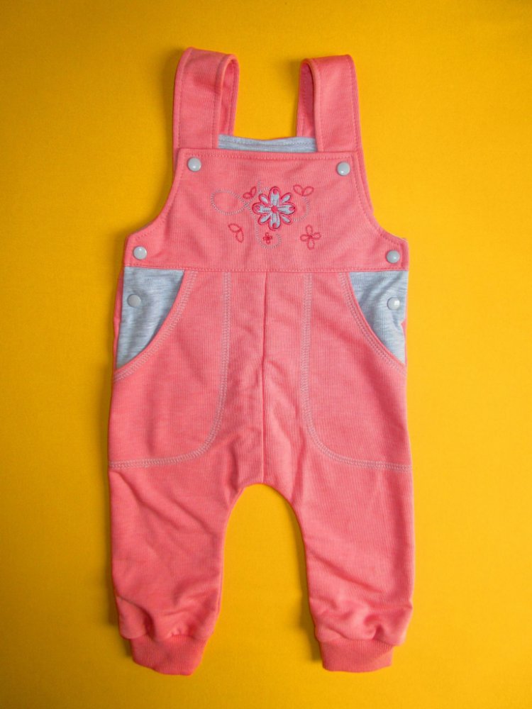Pohodlné a praktické bavlněné tepláky s laclem jsou zdobeny aplikací v horní části předního dílu. Přední díl je rovněž odzdoben výrazným prošitím 2 všitých kapes zvýrazněných barevně odlišnou vsuvkou. Aby tepláčky dobře seděly, je přední i zadní část laclu podšitá barevně odlišnou látkou. Pro snadné oblékání lze lacl odepnout jak nahoře tak po stranách. Délka kšírek je nastavitelná díky dvěma patentkám našitým v různých výškách. Propínání je na barevně sladěné patentky. Nohavice jsou zakončeny pružným lemem. Tepláky jsou ušity z nepočesaného bavlněného úpletu. Doporučený způsob praní: v pračce na 40ᵒC, prát a žehlit po rubové straně. Upozornění: výšivka na laclu se může lišit od fotografie.