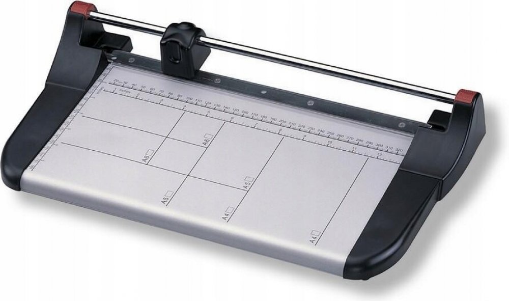 kovové tyči umožňuje řezání až 8 listů A4 papíru najednou.