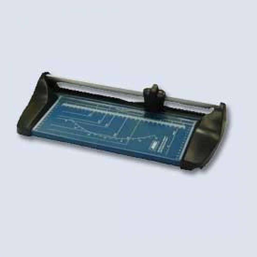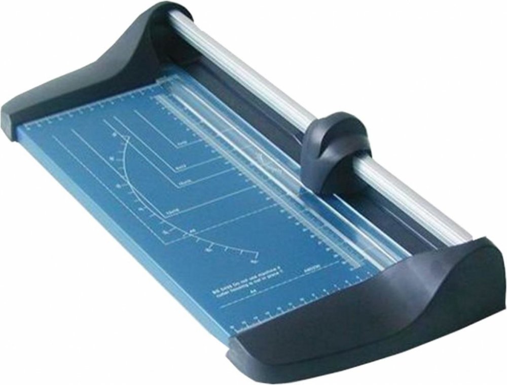 Kancelářská řezačka papíru A3 AR 462. Kotoučová řezačka s broušeným kolečkem na profilované tyči s maximální délkou řezu 460 mm. Pracovní stůl je vybaven natištěnými měřítky a úhly. Nechybí přítlačná lišta z průhledného plastu. Řezačka díky své konstrukci uřízne bez problémů 10 listů papíru.