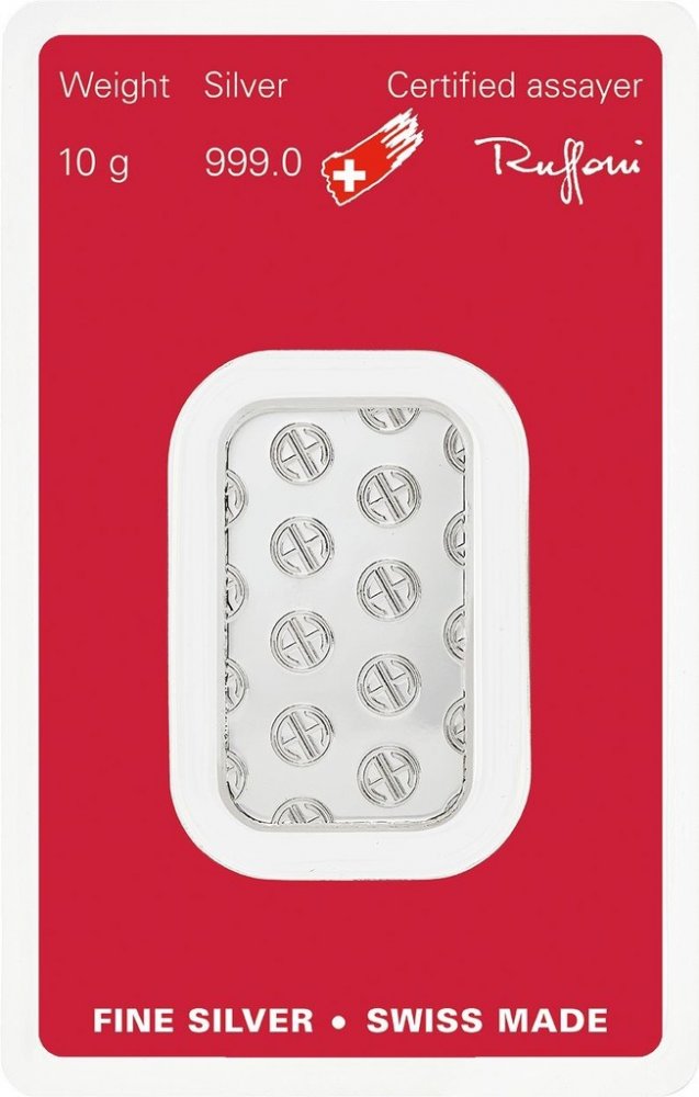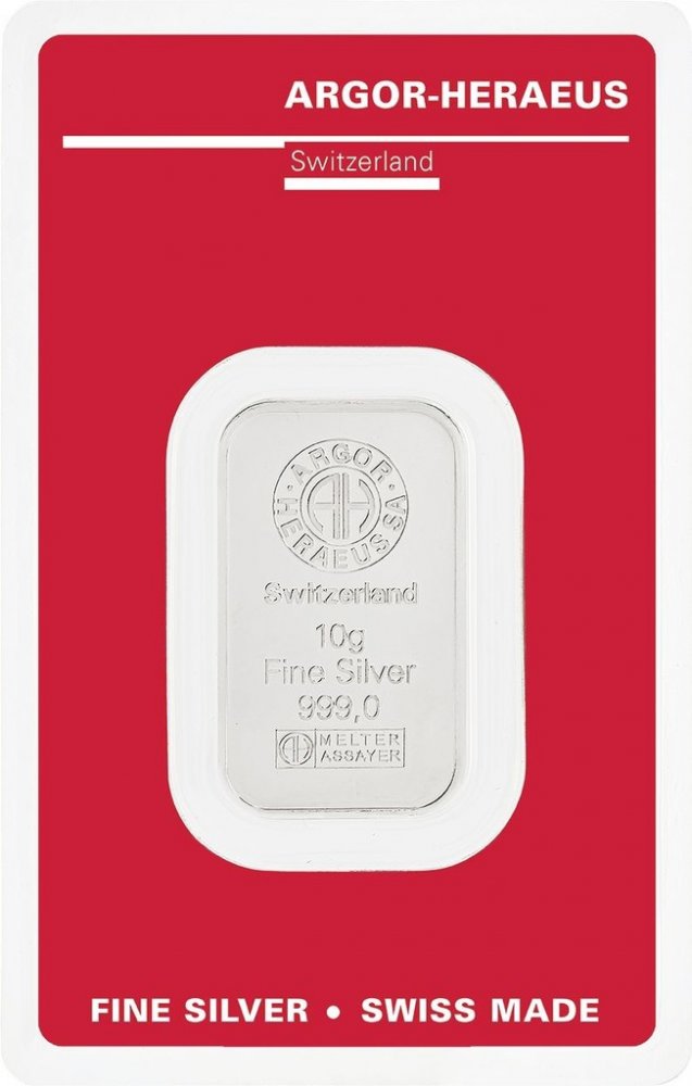 Na desetigramové stříbrné cihličce najdete vyražené logo firmy Argor-Heraeus, údaj o hmotnosti a ryzosti a pečeť kvality Švýcarského centrálního úřadu pro kontrolu drahých kovů. Tato cihlička není číslovaná.