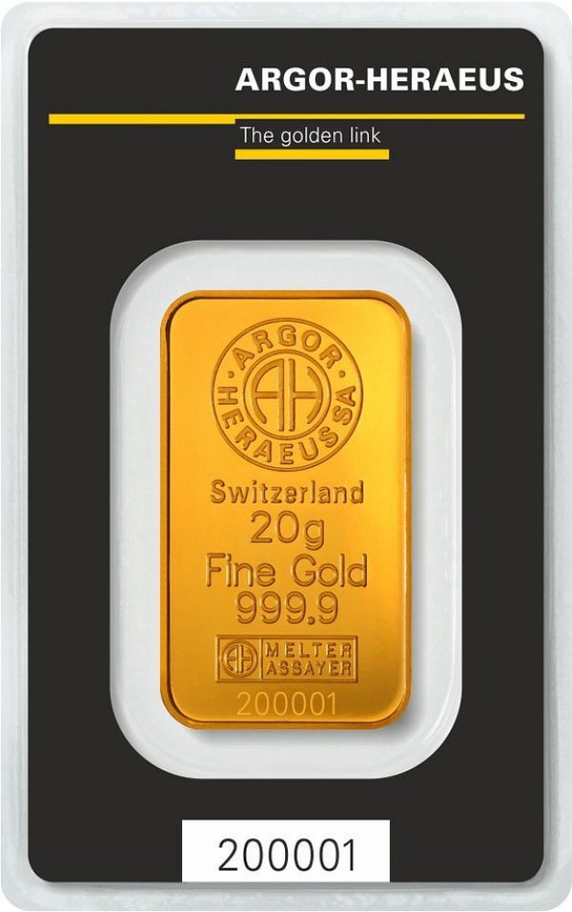 20 gramový zlatý slitek je čtvrtým největší z osmi ražených zlatých slitků, který ARGOR-HERAEUS S.A. vyrábí (1g / 2g / 5g / 10g / 20g / 1 unce / 50g / 100g). ARGOR-HERAEUS S.A. obchoduje se slitky na burzách s drahými kovy v Londýně (London Metal Exchange), od roku 1974 v New Yorku (New York Mercantile Exchange, COMEX Division), od roku 1982 v Tokyu (The Tokyo Commodity Exchange, TOCOM) a od roku 2005 také v Dubai (Dubai Multi Commodities Centre).