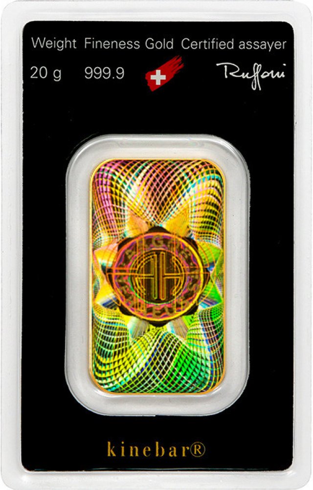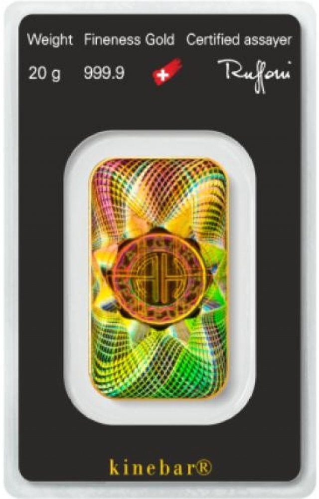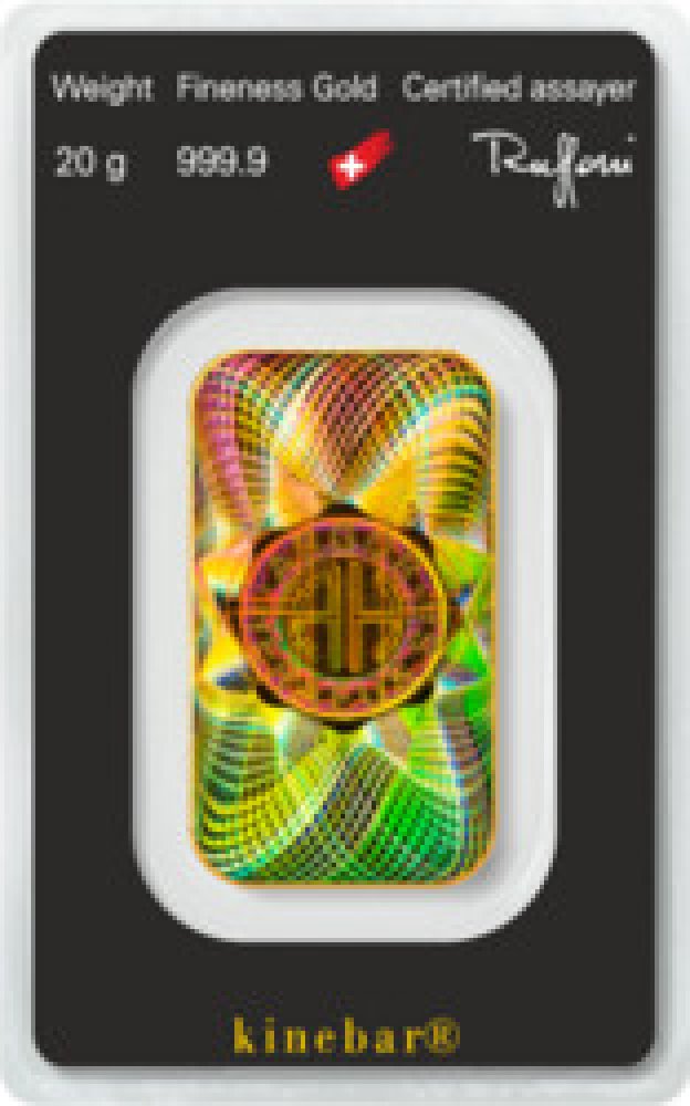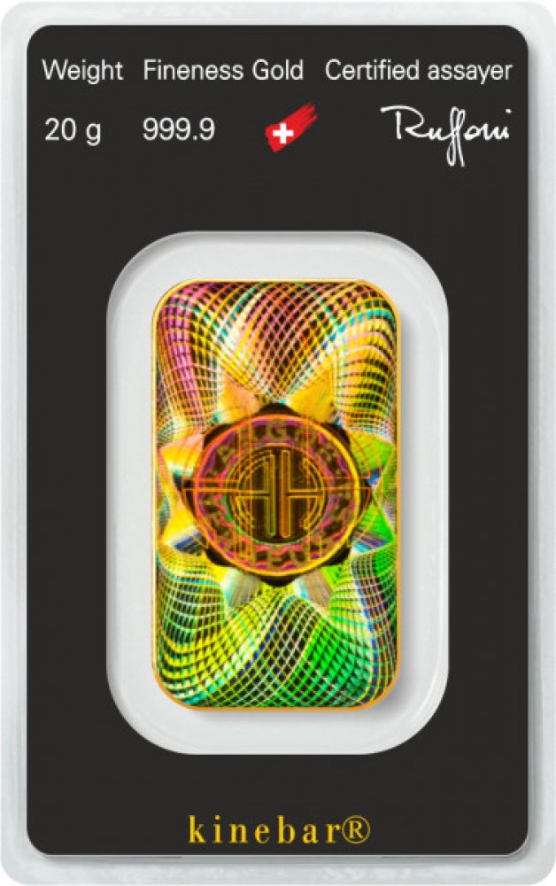 Slitky Kinebar nesou na své zadní straně logo výrobce Argor Heraeus provedené laserem speciální holografickou technikou Kinebar. Kinebar je světový unikát, který je vytvořený technologií Kinegram (OVD Kinegram Corp.) na zlaté slitky. Obraz kinegramu je vytvořen jemným...