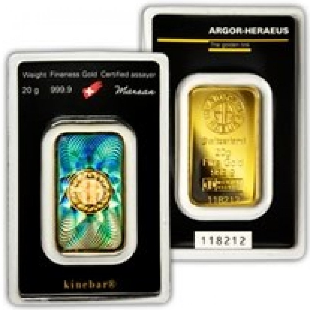 Zlatý slitek 20 g Argor Heraeus Kinebar